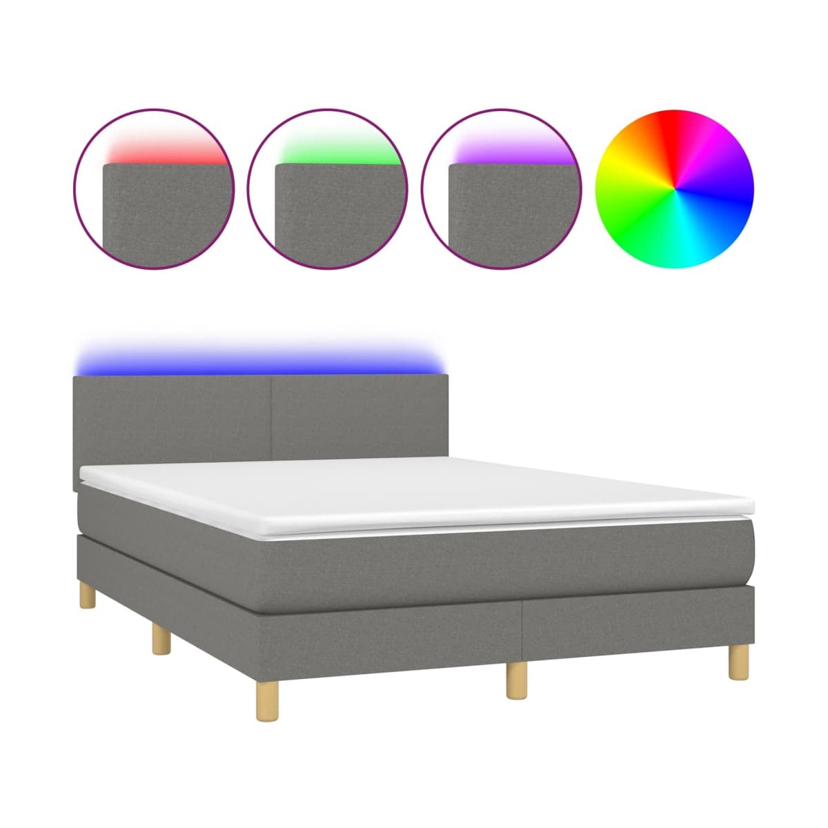 Utiliza esta cama box spring con colchón y LED para disfrutar de un sueño reparador. Es el centro de atención de tu dormitorio. Material de primera calidad: La tela posee un aspecto sencillo y limpio, y es transpirable y duradera.Cabecero práctico: El cabecero de la cama es ajustable en altura según tus preferencias. El cabecero de la cama te proporciona un excelente apoyo para la espalda mientras estás sentado en la cama para leer o ver la televisión.Tira de LED de colores: Alegra la oscuridad con luces LED de colores.Colchón de muelles ensacados: El muelle ensacado individual incorporado es conocido por su altísima calidad, al tiempo que garantiza un alto nivel de durabilidad y adaptabilidad. Puede absorber eficazmente el ruido y los golpes causados por los lanzamientos y los giros.Protector de colchón respetuoso con la piel: El protector de colchón tiene una funda de tejido resistente y respetuoso con la piel, que lo hace suave y confortable. Nota: La lona impermeable no está incluidaPor razones de higiene, el colchón no puede devolverse si se ha quitado o abierto el embalaje.Cada producto viene con un manual de montaje en la caja para facilitar el montaje.Únicamente puedes cortar por la parte con el símbolo de las tijeras y únicamente la parte con el USB seguirá funcionando como antes.El producto tiene un conector USB, pero no se incluye la fuente de alimentación USB de 5 V certificada.