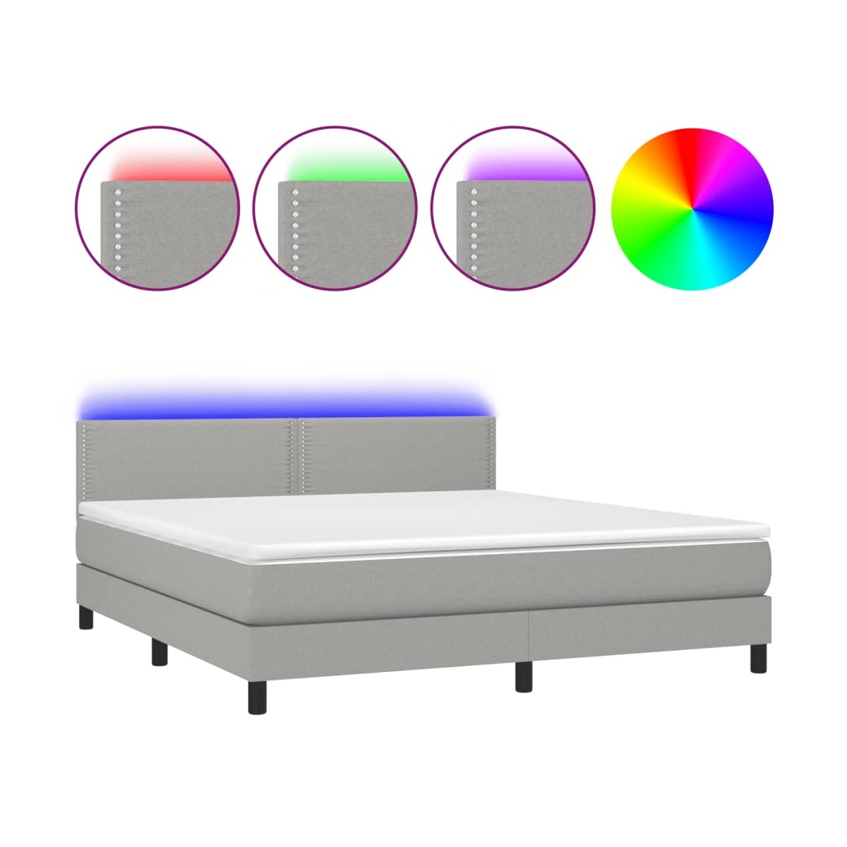 Utiliza esta cama tipo box spring con colchón y luces LED para disfrutar de un sueño reparador. Será el centro de atención del dormitorio. Material de primera calidad: La tela posee un aspecto sencillo y limpio, y es transpirable y duradera.Cabecero práctico: El cabecero de la cama es ajustable en altura según tus preferencias. El cabecero de la cama te proporciona un excelente apoyo para la espalda mientras estás sentado en la cama para leer o ver la televisión.Tira de LED de colores: Alegra la oscuridad con luces LED de colores.Colchón de muelles ensacados: El muelle ensacado individual incorporado es conocido por su altísima calidad, al tiempo que garantiza un alto nivel de durabilidad y adaptabilidad. Puede absorber eficazmente el ruido y los golpes causados por los lanzamientos y los giros.Protector de colchón respetuoso con la piel: El protector de colchón tiene una funda de tejido resistente y respetuoso con la piel, que lo hace suave y confortable. Nota:Por razones de higiene, el colchón no puede devolverse si se ha quitado o abierto el embalaje.Cada producto viene con un manual de montaje en la caja para facilitar el montaje.Únicamente puedes cortar por la parte con el símbolo de las tijeras y únicamente la parte con el USB seguirá funcionando como antes.El producto tiene un conector USB, pero no se incluye la fuente de alimentación USB de 5 V certificada.