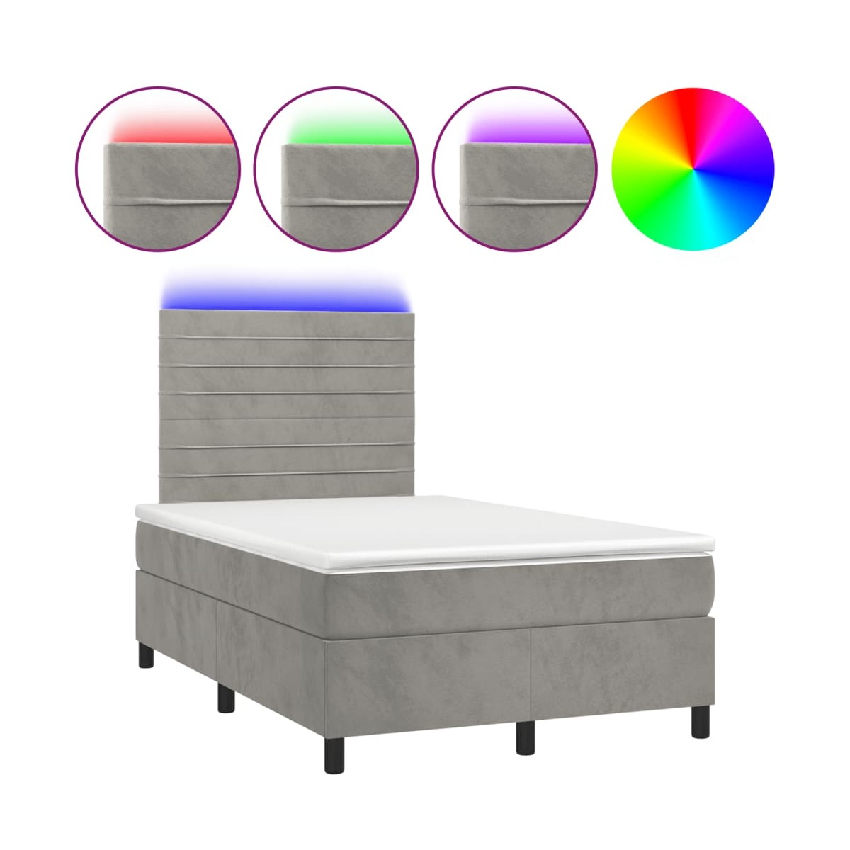 Utiliza esta cama box spring con colchón y LED para disfrutar de un sueño reparador. Es el centro de atención de tu dormitorio. Terciopelo suave: El terciopelo es una tela suave y lujosa, reconocida por su denso pelo de fibras cortadas de forma uniforme que tienen una suave pelusa. La tela de terciopelo posee un característico y suave tacto, lo que hace que sea cómoda al tacto.Cabecero práctico: El cabecero de la cama es ajustable en altura según tus preferencias. El cabecero de la cama te proporciona un excelente apoyo para la espalda mientras estás sentado en la cama para leer o ver la televisión.Tira de LED de colores: Alegra la oscuridad con luces LED de colores.Colchón de muelles ensacados: El muelle ensacado individual incorporado es conocido por su altísima calidad, al tiempo que garantiza un alto nivel de durabilidad y adaptabilidad. Puede absorber eficazmente el ruido y los golpes causados por los lanzamientos y los giros.Protector de colchón respetuoso con la piel: El protector de colchón tiene una funda de tejido resistente y respetuoso con la piel, que lo hace suave y confortable. Información útil:Por razones de higiene, el colchón no puede devolverse si se ha quitado o abierto el embalaje.Únicamente puedes cortar por la parte con el símbolo de las tijeras y únicamente la parte con el USB seguirá funcionando como antes.El producto tiene un conector USB que necesita una fuente de alimentación USB certificada de 5 V (no incluida).