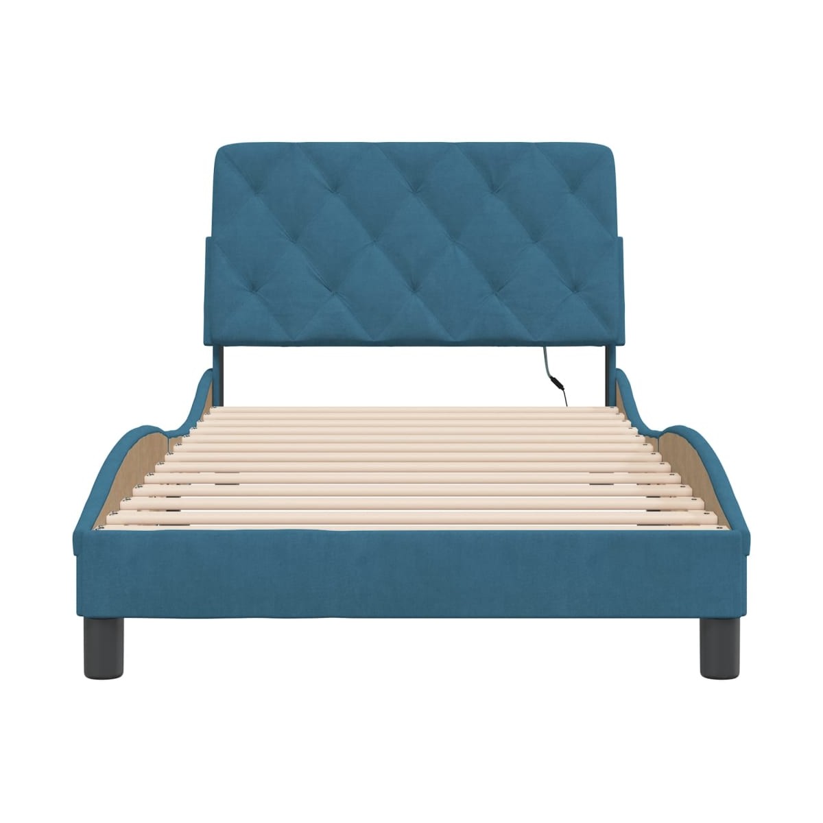 ¡Consigue tener un sueño reparador con esta estructura de cama con luces LED! Es un aporte acogedor para cualquier dormitorio. Terciopelo suave: El terciopelo es una tela suave y cálida, agradable al tacto. Listones robustos: Los listones de madera contrachapada proporcionan una buena distribución del peso, lo que garantiza que el colchón se mantenga en tu sitio con cada giro y vuelta del cuerpo mientras duermes. Excelente soporte: El cabecero acolchado está relleno de espuma para una comodidad ultrasuave y óptima, lo que te brinda un excelente soporte para la espalda mientras estás sentado en la cama para leer o ver la televisión. Tira de LED de colores: Alegra la oscuridad con luces LED de colores. Los cierres de gancho y bucle de la parte posterior del cojín del cabecero se pueden utilizar para fijar las luces LED. Diseño lateral ondulado: El look ondulado de la estructura de la cama es elegante y sofisticado, agregando un toque moderno y elegante a tu decoración, convirtiéndolo en el foco de atención de tu dormitorio. Información útil:El colchón no está incluido con la cama. Disponemos de una variada selección de colchones. Puedes echar un vistazo a nuestra tienda para buscar el colchón correspondiente.El producto tiene un conector USB que necesita una fuente de alimentación USB certificada de 5 V (no incluida).