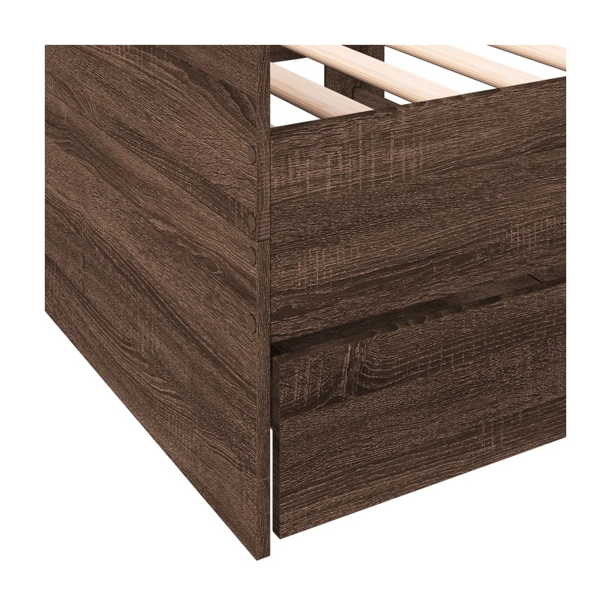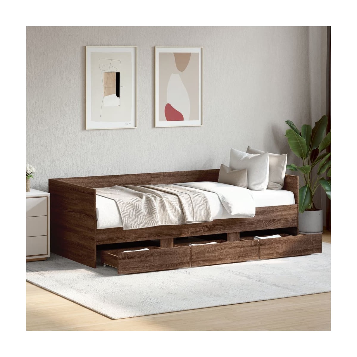 Este sofá cama 2 en 1 con cajones, que sirve como sofá y cama, es un complemento práctico y llamativo para tu salón o dormitorio. Sofá cama versátil: El sofá cama funciona como sofá durante el día y se convierte fácilmente en una cama doble por la noche sacando la cama nido, lo que proporciona una solución práctica para recibir invitados y maximizar el espacio. Amplio espacio de almacenaje: Esta cama de invitados tiene 3 cajones con ruedas que brindan un amplio espacio para guardar ropa, calcetines, juguetes, cojines, etc.Sólida construcción: Este sofá cama tiene una estructura robusta de madera de ingeniería. La madera de ingeniería es de una calidad excepcional con una superficie lisa y cuenta con la fuerza, la estabilidad y la resistencia a la humedad. Información útil:Ten en cuenta que la entrega incluye únicamente una estructura de cama. El colchón no está incluido. Puedes echar un vistazo a nuestra tienda para buscar el correspondiente colchón.