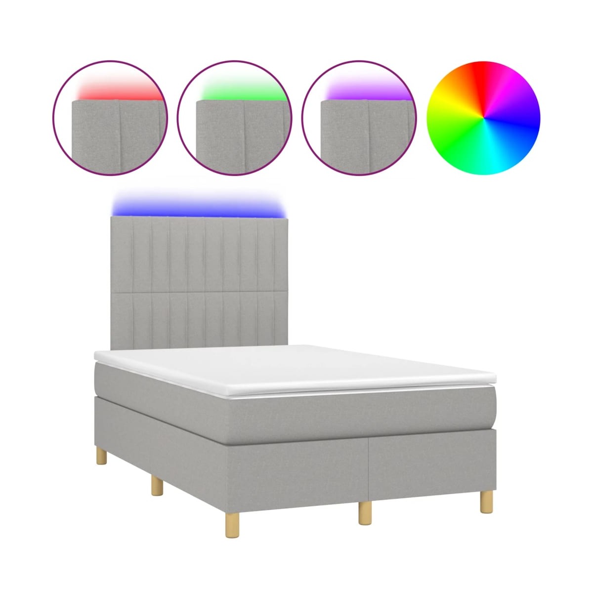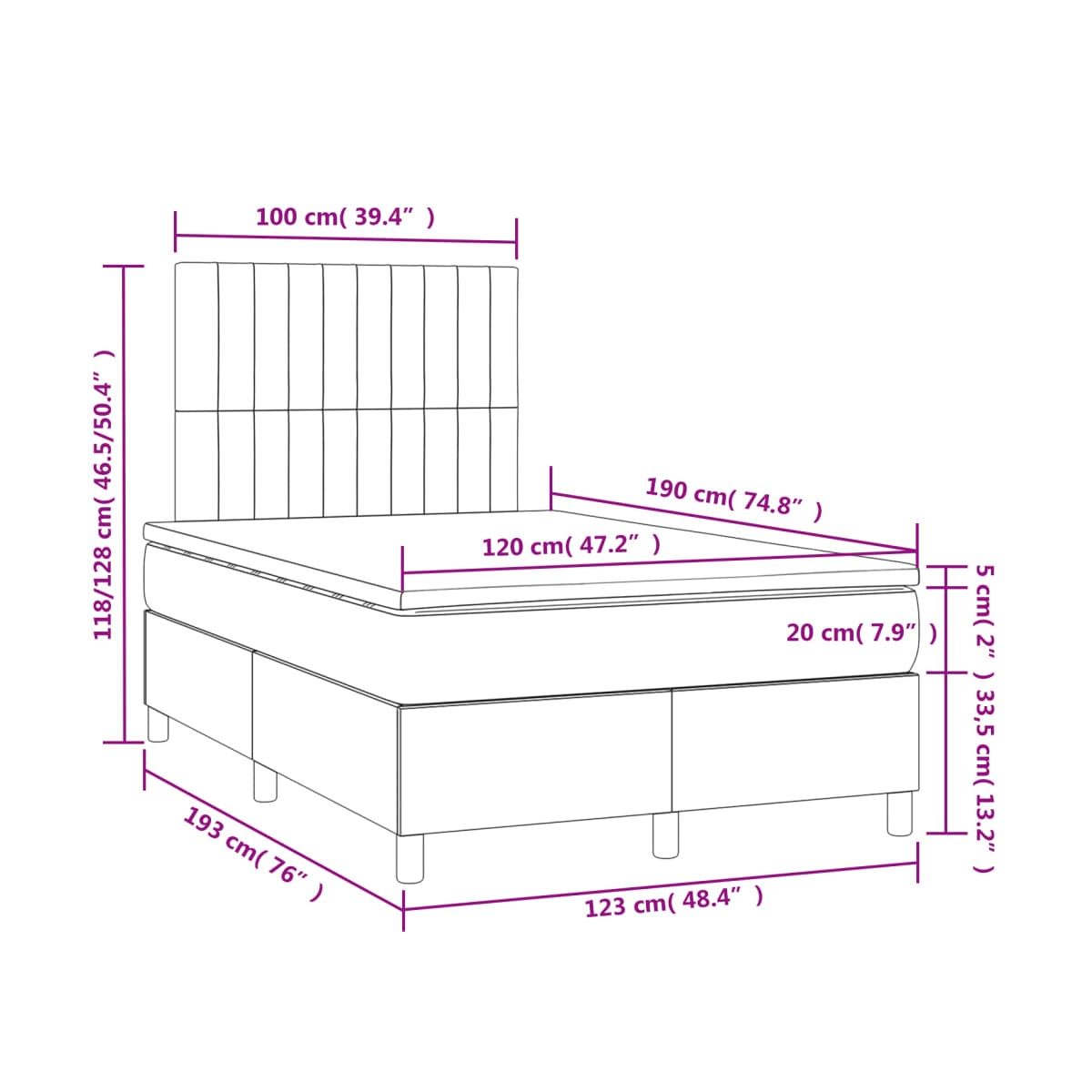 Utiliza esta cama box spring con colchón y LED para disfrutar de un sueño reparador. Es el centro de atención de tu dormitorio. Material de primera calidad: La tela posee un aspecto sencillo y limpio, y es transpirable y duradera.Cabecero práctico: El cabecero de la cama es ajustable en altura según tus preferencias. El cabecero de la cama te proporciona un excelente apoyo para la espalda mientras estás sentado en la cama para leer o ver la televisión.Tira de LED de colores: Alegra la oscuridad con luces LED de colores.Colchón de muelles ensacados: El muelle ensacado individual incorporado es conocido por su altísima calidad, al tiempo que garantiza un alto nivel de durabilidad y adaptabilidad. Puede absorber eficazmente el ruido y los golpes causados por los lanzamientos y los giros.Protector de colchón respetuoso con la piel: El protector de colchón tiene una funda de tejido resistente y respetuoso con la piel, que lo hace suave y confortable. Información útil:Por razones de higiene, el colchón no puede devolverse si se ha quitado o abierto el embalaje.Únicamente puedes cortar por la parte con el símbolo de las tijeras y únicamente la parte con el USB seguirá funcionando como antes.El producto tiene un conector USB que necesita una fuente de alimentación USB certificada de 5 V (no incluida).