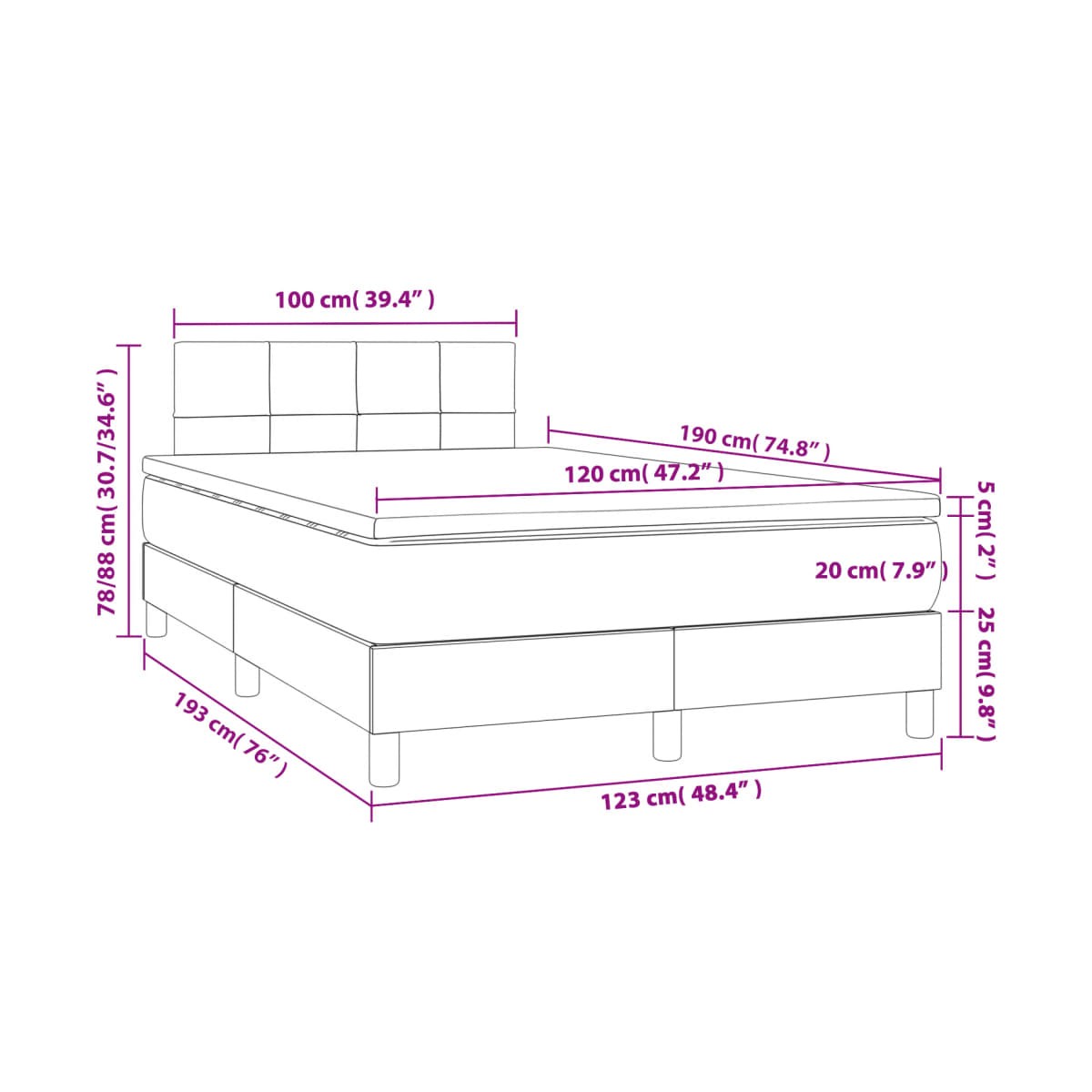 - Dimensiones: 120 x 190 x 20 cm (ancho x largo x alto)