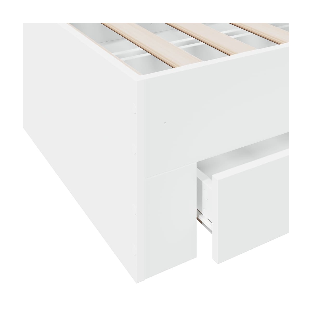 ¡Añade un toque moderno a tu dormitorio con esta estructura de cama con cajones! Es un aporte práctico y decorativo para tu hogar. Material duradero: La estructura de la cama está hecha de madera de ingeniería. La madera de ingeniería tiene una calidad excepcional, con una superficie lisa y también con fuerza, estabilidad y resistencia a la humedad.Listones robustos: Los listones de madera contrachapada proporcionan una buena distribución del peso, lo que garantiza que el colchón se mantenga en tu sitio con cada giro y vuelta del cuerpo mientras duermes.Función de almacenaje: Los cajones de cama incluidos proporcionan amplio espacio de almacenamiento para guardar cosas básicas, y mantienen la habitación limpia y ordenada. Información útil:El colchón no está incluido con la cama. Disponemos de una variada selección de colchones. Puedes echar un vistazo a nuestra tienda para buscar el colchón correspondiente.
