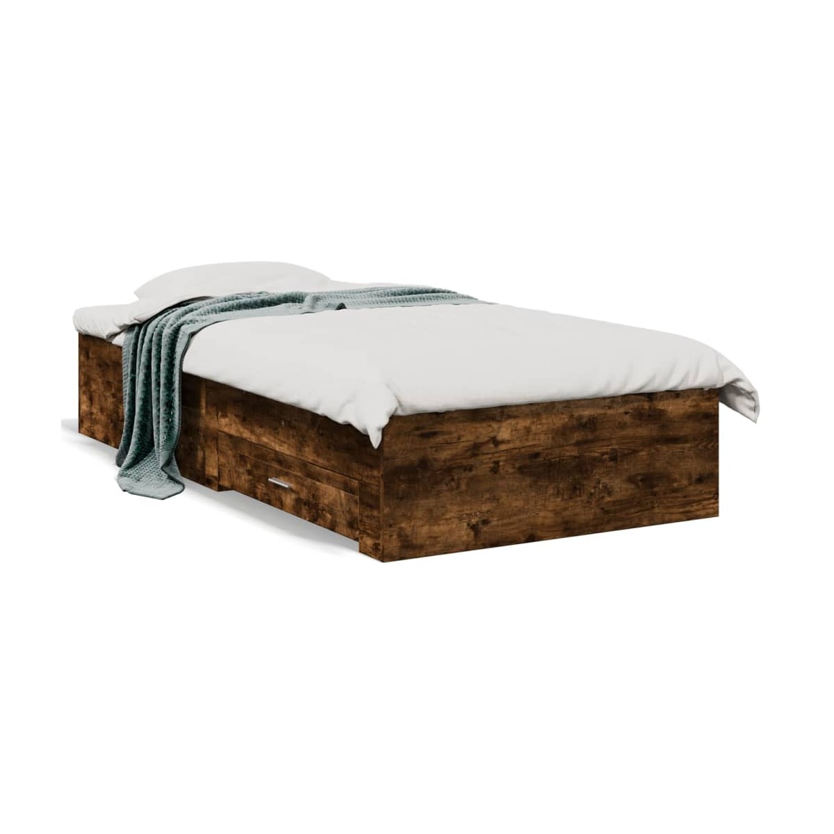 ¡Añade un toque moderno a tu dormitorio con esta estructura de cama con cajones! Es un aporte práctico y decorativo para tu hogar. Material duradero: La estructura de la cama está hecha de madera de ingeniería. La madera de ingeniería tiene una calidad excepcional, con una superficie lisa y también con fuerza, estabilidad y resistencia a la humedad.Listones robustos: Los listones de madera contrachapada proporcionan una buena distribución del peso, lo que garantiza que el colchón se mantenga en tu sitio con cada giro y vuelta del cuerpo mientras duermes.Función de almacenaje: Los cajones de cama incluidos proporcionan amplio espacio de almacenamiento para guardar cosas básicas, y mantienen la habitación limpia y ordenada. Información útil:El colchón no está incluido con la cama. Disponemos de una variada selección de colchones. Puedes echar un vistazo a nuestra tienda para buscar el colchón correspondiente.