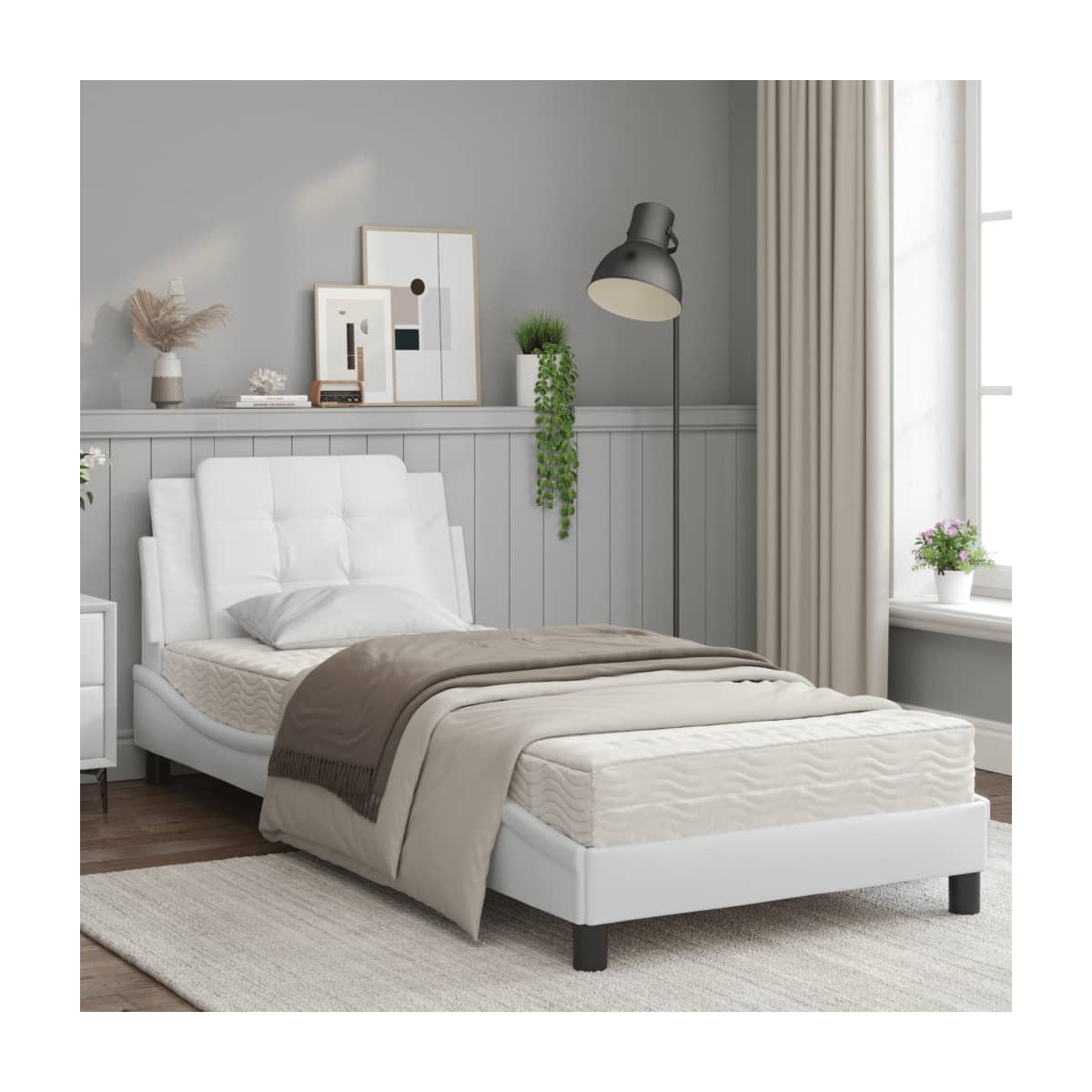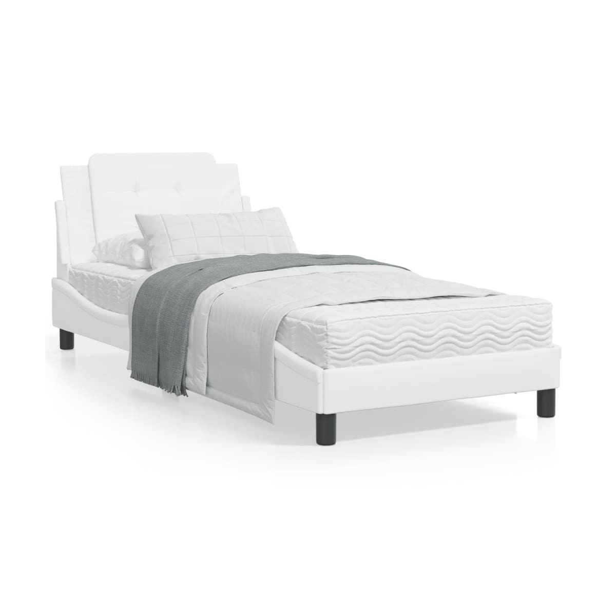 ¡Consigue tener un sueño más reparador en esta cama con colchón! Es un aporte acogedor para cualquier dormitorio. Material duradero: El cuero sintético de primera calidad es un material muy duradero. Es resistente a las manchas, por lo que es fácil de limpiar con un paño húmedo. Además, la superficie lisa da un aspecto lujoso y la belleza del cuero auténtico. Listones robustos: Los listones de madera contrachapada proporcionan una buena distribución del peso, lo que garantiza que el colchón se mantenga en tu sitio con cada giro y vuelta del cuerpo mientras duermes. Excelente soporte: El cabecero acolchado está relleno de espuma para una comodidad ultrasuave y óptima, lo que te brinda un excelente soporte para la espalda mientras estás sentado en la cama para leer o ver la televisión. Colchón de espuma: Este colchón de cama de tela de 3 capas está relleno de espuma de PU 22D para ofrecer un confort óptimo. Alivia el cansancio y favorece la circulación sanguínea, con el fin de ofrecerte una relajación completa y una buena calidad de sueño. Además, el colchón está disponible en dureza H2 y H3, por lo que solo tienes que girarlo para elegir la dureza que más te convenga. Diseño lateral ondulado: El look ondulado de la estructura de la cama es elegante y sofisticado, agregando un toque moderno y elegante a tu decoración, convirtiéndolo en el foco de atención de tu dormitorio.