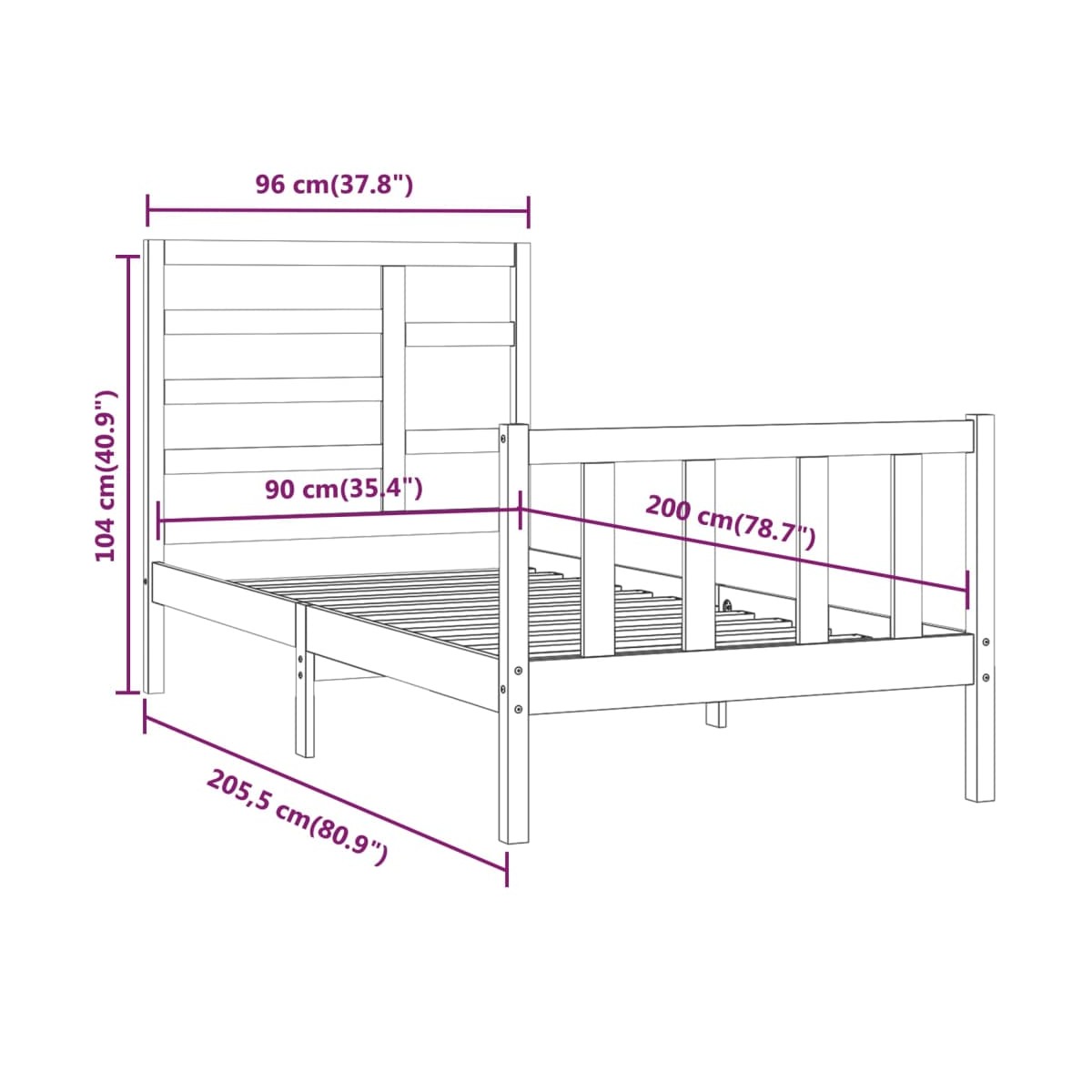 ¡Lleva la ruta moderna a tu dormitorio con esta estructura de cama de madera! Es un aporte práctico y decorativo para tu hogar. Madera de pino maciza: La madera de pino maciza es un bonito material natural. La madera de pino tiene vetas rectas, y los nudos dan al material su distintivo aspecto rústico.Listones robustos: Los listones de madera contrachapada proporcionan una buena distribución del peso, lo que garantiza que el colchón se mantenga en tu sitio con cada giro y vuelta del cuerpo mientras duermes.Diseño llamativo: El diseño del cabecero y del pie de cama, es decorativo y práctico. Añade un estilo y comodidad únicos. Nota:La entrega incluye solo una estructura de cama. El colchón no está incluido. Puedes echar un vistazo en nuestra tienda para buscar colchones a juego.Esta estructura de cama es adecuada para un colchón de 90 x 200 cm