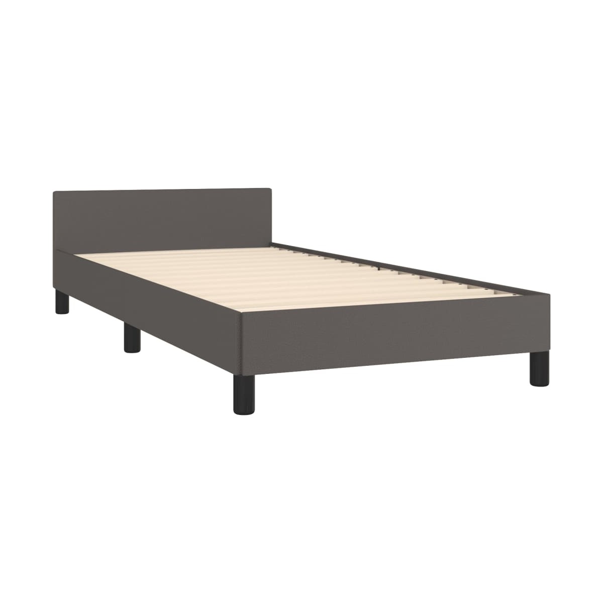 ¡Consigue un sueño más reparador con esta estructura de cama con cabecero! Es un aporte acogedor para cualquier dormitorio. Material duradero: El cuero sintético de primera calidad es un material muy duradero. Es resistente a las manchas, por lo que es fácil de limpiar con un paño húmedo. Además, la superficie lisa da un aspecto lujoso y la belleza del cuero auténtico.Altura regulable: El cabecero de la cama es ajustable en altura según tus preferencias.Patas de apoyo: La cama se apoya en patas robustas, que garantizan su estabilidad, seguridad y firmeza.Listones robustos: Los listones de madera contrachapada proporcionan una buena distribución del peso, lo que garantiza que el colchón se mantenga en tu sitio con cada giro y vuelta del cuerpo mientras duermes.Excelente apoyo: El cabecero de la cama te proporciona un excelente apoyo para la espalda mientras estás sentado en la cama para leer o ver la televisión. Nota:La entrega incluye solo una estructura de cama. El colchón no está incluido. Puedes echar un vistazo en nuestra tienda para buscar colchones a juego.Cada producto viene con un manual de montaje en la caja para facilitar el montaje.