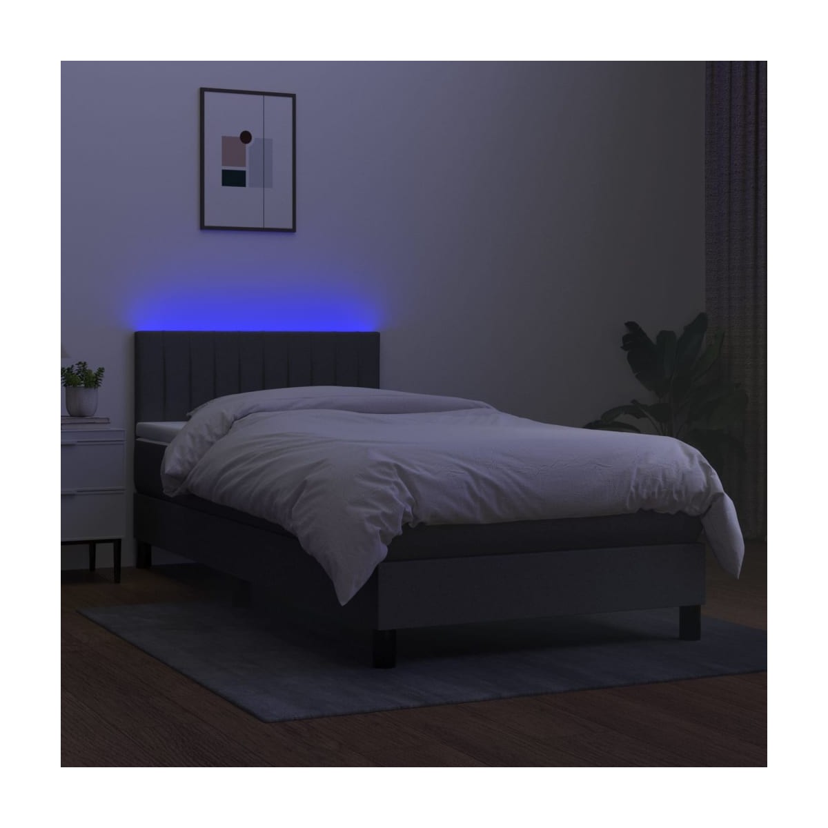 Utiliza esta cama tipo box spring con colchón y luces LED para disfrutar de un sueño reparador. Será el centro de atención del dormitorio. Material de primera calidad: La tela posee un aspecto sencillo y limpio, y es transpirable y duradera.Cabecero práctico: El cabecero de la cama es ajustable en altura según tus preferencias. El cabecero de la cama te proporciona un excelente apoyo para la espalda mientras estás sentado en la cama para leer o ver la televisión.Tira de LED de colores: Alegra la oscuridad con luces LED de colores.Colchón de muelles ensacados: El muelle ensacado individual incorporado es conocido por su altísima calidad, al tiempo que garantiza un alto nivel de durabilidad y adaptabilidad. Puede absorber eficazmente el ruido y los golpes causados por los lanzamientos y los giros.Protector de colchón respetuoso con la piel: El protector de colchón tiene una funda de tejido resistente y respetuoso con la piel, que lo hace suave y confortable. Nota: La lona impermeable no está incluidaPor razones de higiene, el colchón no puede devolverse si se ha quitado o abierto el embalaje.Cada producto viene con un manual de montaje en la caja para facilitar el montaje.Únicamente puedes cortar por la parte con el símbolo de las tijeras y únicamente la parte con el USB seguirá funcionando como antes.El producto tiene un conector USB, pero no se incluye la fuente de alimentación USB de 5 V certificada.