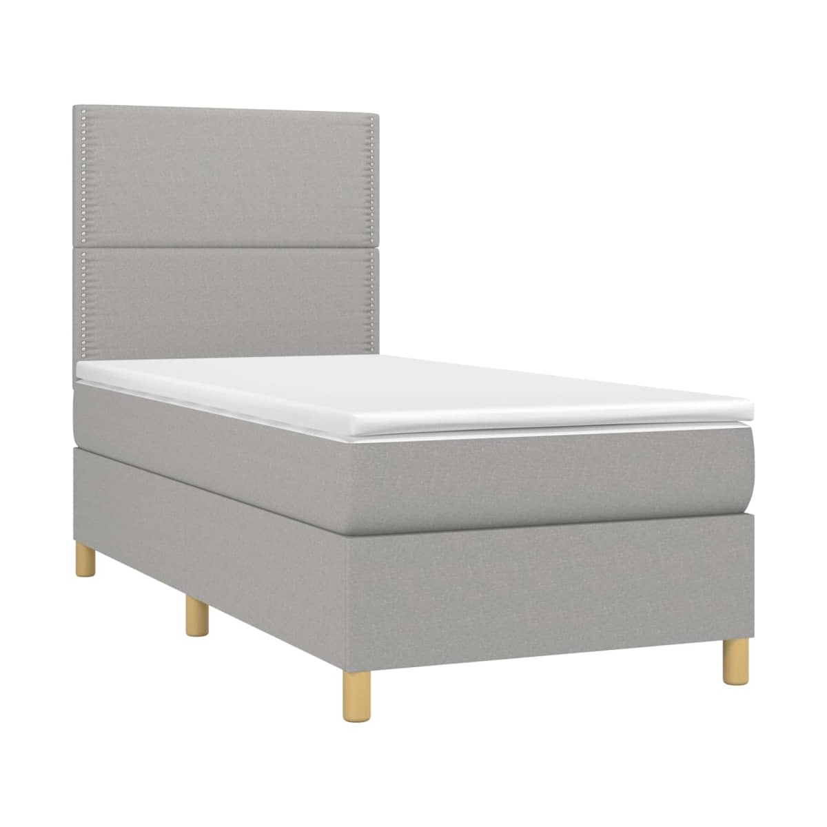 Utiliza esta cama box spring con colchón y LED para disfrutar de un sueño reparador. Es el centro de atención de tu dormitorio. Material de primera calidad: La tela posee un aspecto sencillo y limpio, y es transpirable y duradera.Cabecero práctico: El cabecero de la cama es ajustable en altura según tus preferencias. El cabecero de la cama te proporciona un excelente apoyo para la espalda mientras estás sentado en la cama para leer o ver la televisión.Tira de LED de colores: Alegra la oscuridad con luces LED de colores.Colchón de muelles ensacados: El muelle ensacado individual incorporado es conocido por su altísima calidad, al tiempo que garantiza un alto nivel de durabilidad y adaptabilidad. Puede absorber eficazmente el ruido y los golpes causados por los lanzamientos y los giros.Protector de colchón respetuoso con la piel: El protector de colchón tiene una funda de tejido resistente y respetuoso con la piel, que lo hace suave y confortable. Nota:Por razones de higiene, el colchón no puede devolverse si se ha quitado o abierto el embalaje.Únicamente puedes cortar por la parte con el símbolo de las tijeras y únicamente la parte con el USB seguirá funcionando como antes.Cada producto viene con un manual de montaje en la caja para facilitar el montaje.El producto tiene un conector USB, pero no se incluye la fuente de alimentación USB de 5 V certificada.
