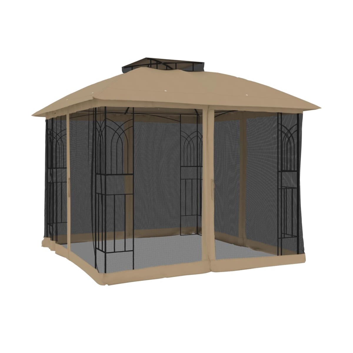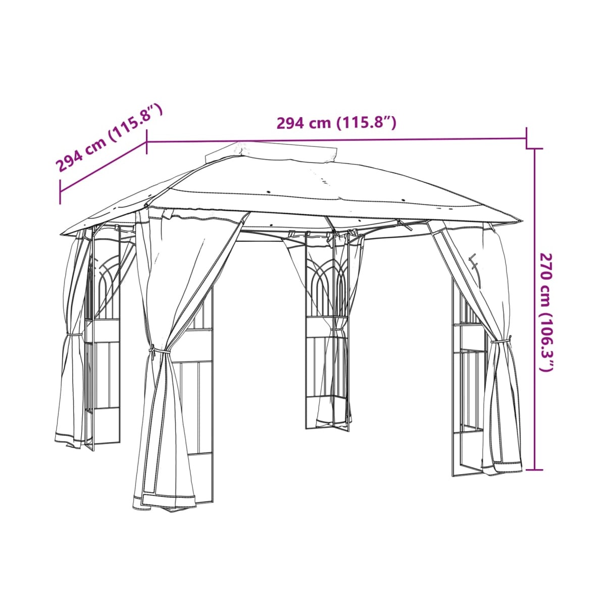 Crea momentos inolvidables: ¡reúnete, relájate y disfruta del tiempo en familia bajo tu cenador! Armazón robusto y duradero: Hecha de acero resistente al óxido, el armazón es apreciado para un uso prolongado en exteriores. Garantiza la estabilidad con sólidas vigas para sostener el techo y soportes reforzados.Amplio espacio: Toda la carpa cenador es lo suficientemente grande como para acomodar a tu familia e invitados. También puede sagregar mesas de comedor en el interior.Diseño de techo ventilado de 2 niveles: El cenador adopta un elegante diseño de 2 capas para una gran ventilación y estabilidad, manteniendo el fresco en los días soleados y fortaleciendo la resistencia al viento cuando hace mal tiempo.Protección contra el sol y la lluvia: El techo inclinado está hecho de poliéster duradero con un hermoso diseño de alero, que es resistente al agua y a los rayos UV, lo que crea un lugar ideal para actividades al aire libre. En comparación con las cubiertas planas, evita la acumulación de agua de lluvia y prolonga la vida útil.Paredes laterales de malla transpirable: Las paredes de malla proporcionan una buena circulación de aire y al mismo tiempo, permiten disfrutar de un ambiente relativamente privado con tu familia y amigos. Además, pueden protegerte eficazmente de los molestos insectos, proporcionando un espacio de descanso cómodo. Las cremalleras facilitan la entrada y salida. Información útil:Este producto no es adecuado para usar en condiciones meteorológicas adversas, como vientos fuertes, lluvia intensa, nieve, tormenta, etc.