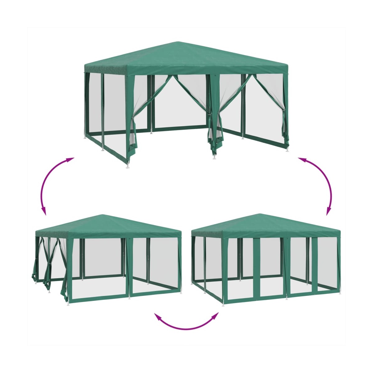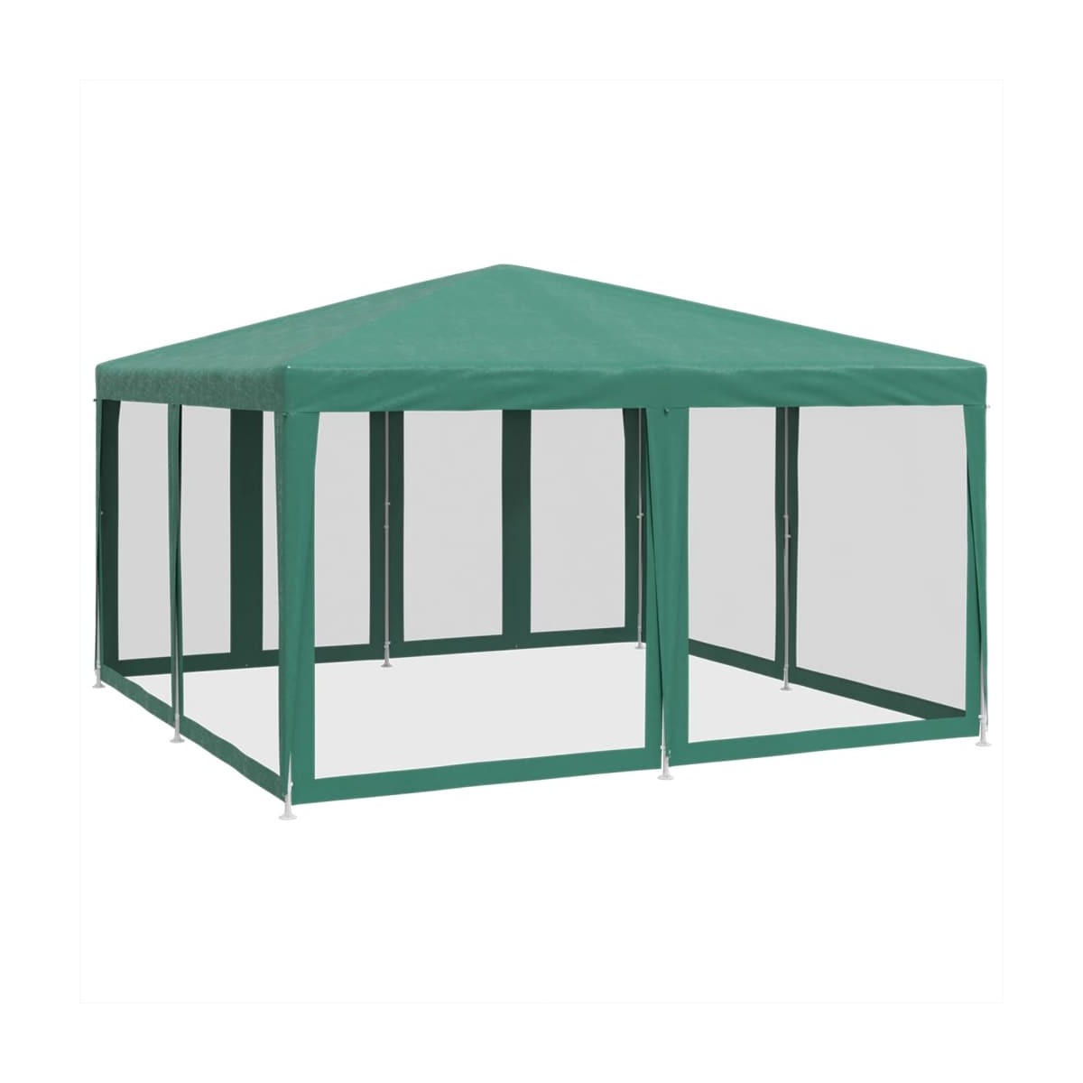 Esta súpermoderna carpa para fiestas, con una resistente estructura de hierro, un tejado resistente al agua y ocho paredes de malla, es un refugio ideal contra el sol. Material de primera calidad: Esta carpa cenador está hecha de polietileno de alta densidad (HDPE) que te protege de la luz del sol directa y permite que corra el aire. El HDPE está especialmente tratado, por lo que también es resistente al agua.Estructura de hierro: La estructura de hierro de esta tienda de jardín garantiza su solidez y estabilidad.Diseño práctico: La tienda tiene ocho paredes laterales de malla, que te protegen de los molestos insectos. Y una de las paredes cuenta con 2 cremalleras para facilitar la entrada y el acceso.Amplios usos: Esta carpa para eventos es una opción ideal para una amplia gama de eventos al aire libre, como espectáculos, bodas, fiestas, barbacoas, festivales, etc. Información útil:Este producto NUNCA debe usarse con mal tiempo, como vientos fuertes, lluvias intensas, nieve, tormenta, etc.