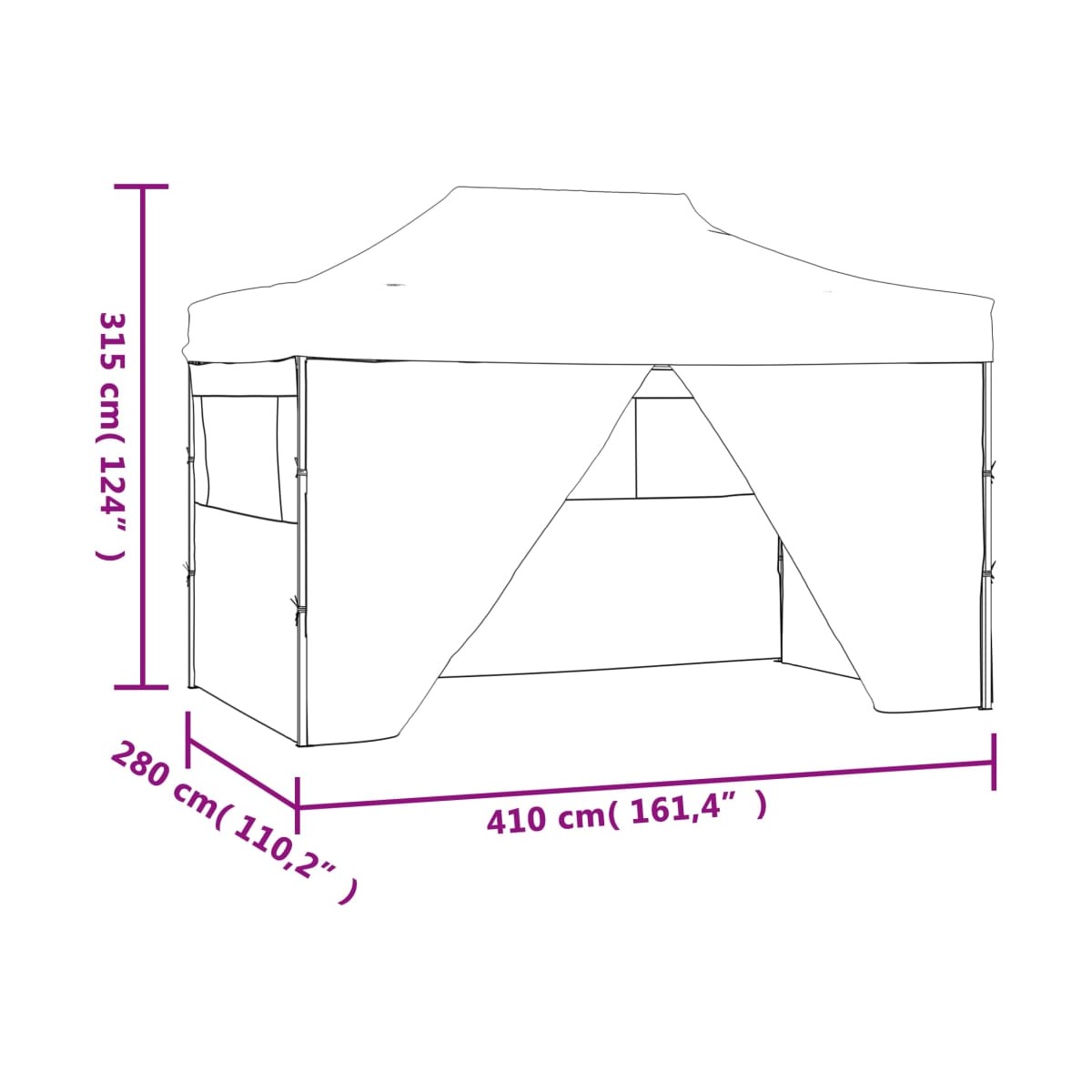 - Dimensiones totales: 280 x 410 x 315 cm (largo x ancho x alto)