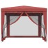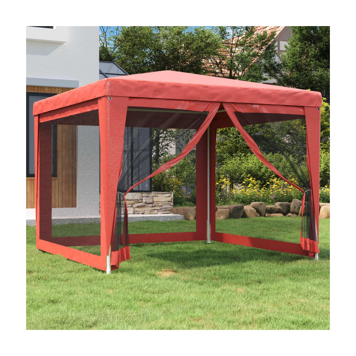 Esta súpermoderna carpa para fiestas, con una resistente estructura de hierro, un tejado resistente al agua y cuatro paredes de malla, es un refugio ideal contra el sol. Material de primera calidad: Este cenador está hecho de polietileno de alta densidad (HDPE) que te protege de la luz del sol directa y permite que corra el aire. El HDPE está especialmente tratado, por lo que también es resistente al agua.Estructura de hierro: La estructura de hierro de este cenador garantiza su solidez y estabilidad.Diseño práctico: La carpa tiene cuatro paredes laterales de malla, que te protegen de los molestos insectos. Y una de las paredes cuenta con una cremallera para facilitar la entrada y el acceso.Amplios usos: Esta carpa para eventos es una opción ideal para una amplia gama de eventos al aire libre, como espectáculos, bodas, fiestas, barbacoas, festivales, etc. Nota:Este producto NUNCA debe usarse con mal tiempo, como vientos fuertes, lluvias intensas, nieve, tormenta, etc.Cada producto viene con un manual de montaje en la caja para facilitar el montaje.