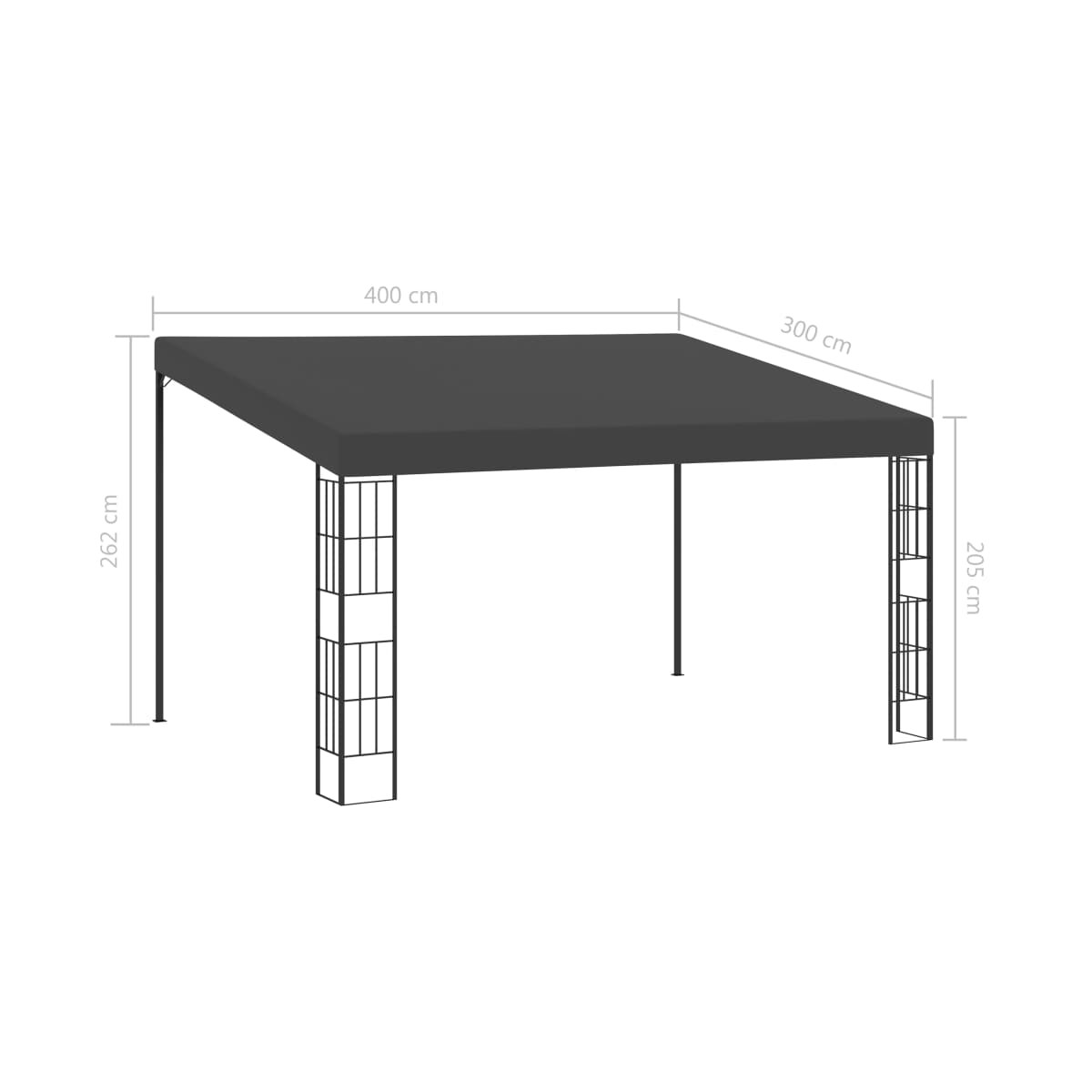 Saca lo de dentro afuera con este cenador con montaje en la pared. Este exclusivo y funcional refugio para el sol está diseñado para ser la extensión perfecta de tu casa, con el fin de permitirte disfrutar del exterior mientras estás refugiado de los elementos. El llamativo cenador está pensado para montarse sobre la pared exterior de tu casa, con el fin de ofrecerte sombra en tu patio. Con una estructura de acero con recubrimiento en polvo, este cenador es duradero y estable. El toldo con revestimiento de PA bloquea la mayoría de rayos nocivos y te ofrece la protección solar definitiva. NOTA: Este producto NUNCA se debe usar con mal tiempo, como fuertes vientos, fuertes lluvias, nieve, tormentas, etc.
