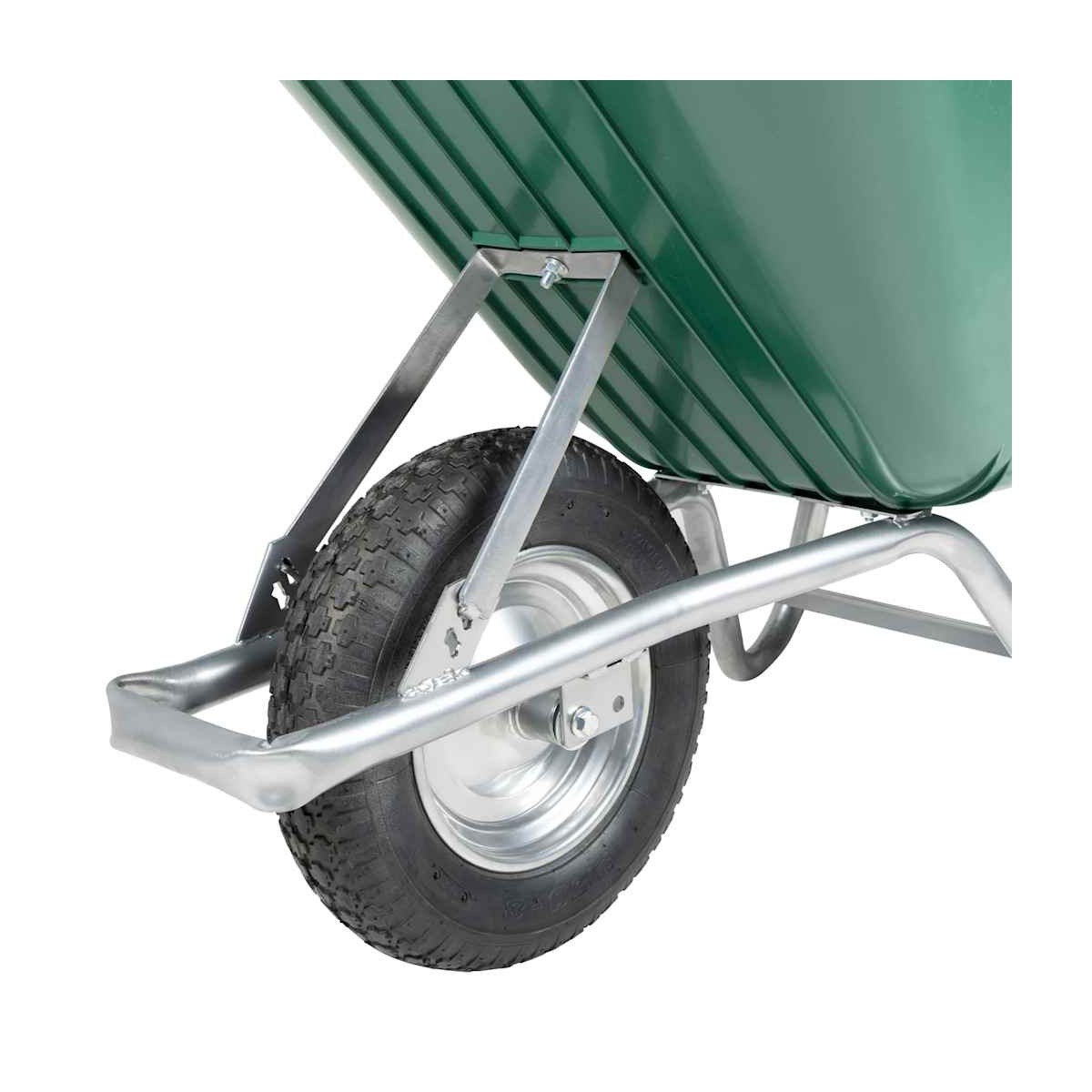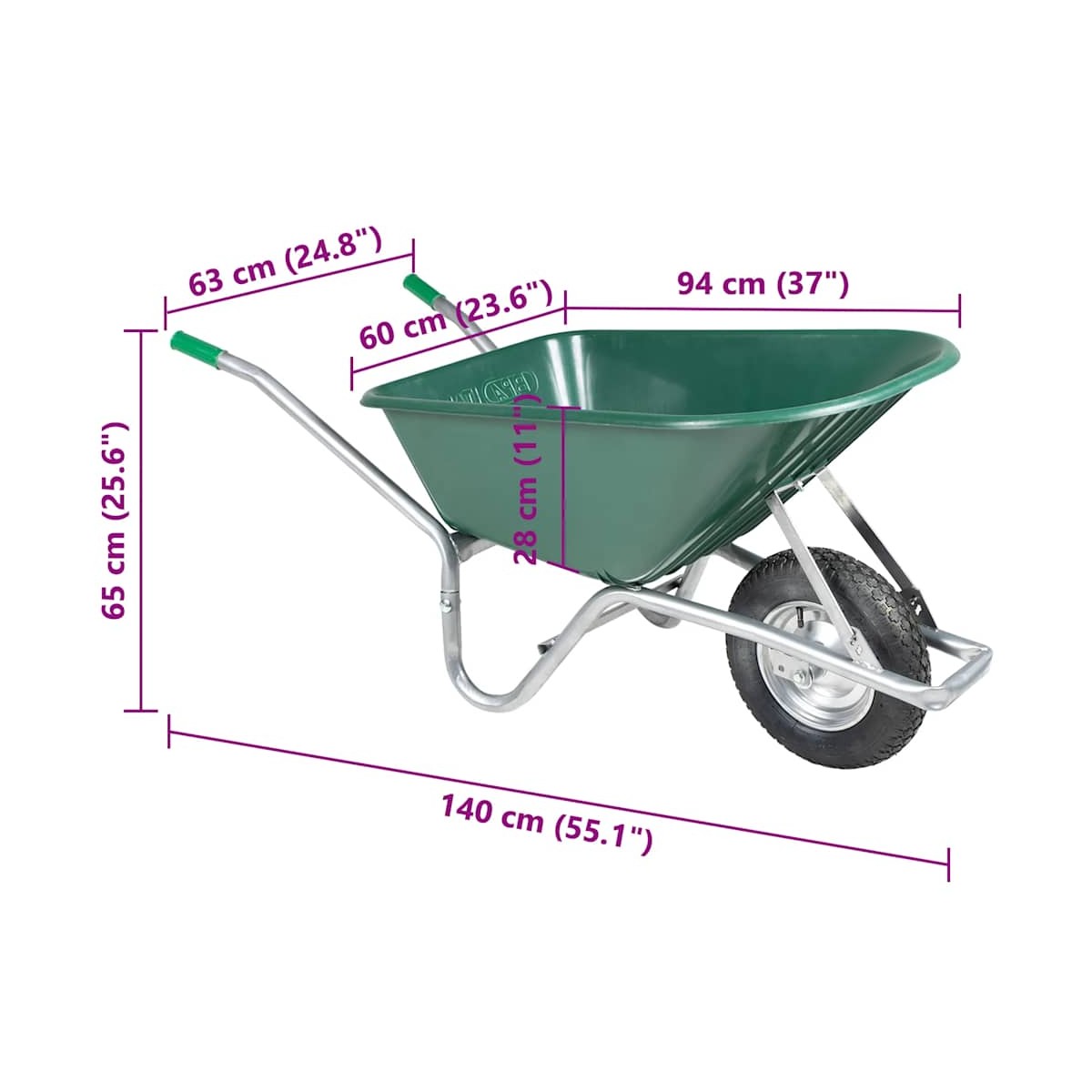 ¡Utilice esta carretilla para transportar fácilmente productos para jardinería, proyectos de mejoras en el hogar y más! Marco estable y duradero: el marco de acero galvanizado es fuerte, estable, duradero y resistente a la corrosión y al clima severo, lo que garantiza un rendimiento duradero.Alta capacidad de carga: con una capacidad de peso de hasta 150 kg, esta carretilla resistente es perfecta para transportar artículos como tierra, desechos de jardín, leña o herramientas de jardinería.Amplia capacidad: la robusta bandeja con una capacidad de 90 L proporciona mucho espacio para transportar mercancías al tiempo que ofrece una excelente resistencia a la corrosión y un fácil mantenimiento.Movilidad suave: la rueda neumática de la carretilla de jardín garantiza un movimiento suave y confiable incluso en terrenos difíciles, reduciendo la tensión durante el uso.Mango cómodo: el mango de esta carretilla de jardín proporciona un agarre cómodo para maniobrar y controlar fácilmente.