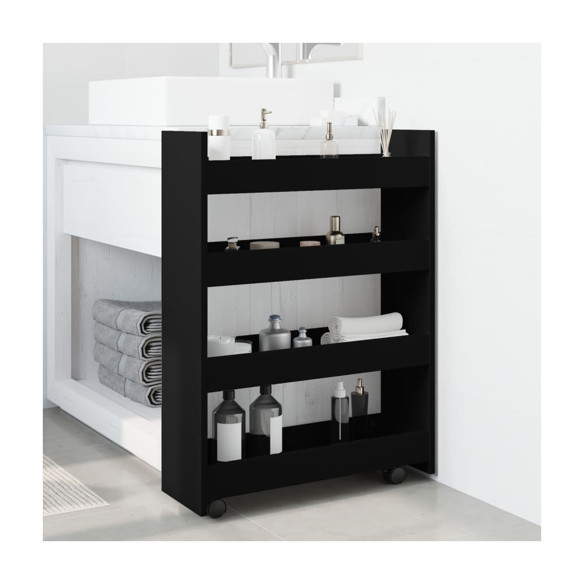 Este carro de almacenamiento estrecho está destinado a ser un aporte decorativo y práctico para tu hogar. Material estable y duradero: La madera de ingeniería es un material duradero y estable con una superficie lisa que es resistente a la humedad, la deformación y la rotura, lo que la convierte en una opción fiable para una variedad de proyectos.Amplio espacio de almacenamiento: El carro de almacenamiento delgado proporciona un amplio espacio de almacenamiento para mantener tus diversos elementos esenciales diarios bien organizados y al alcance de la mano.Fácil de mover: Este carrito rodante, con las cuatro ruedas giratorias incluidas, se puede mover fácilmente al lugar deseado. Dos de las ruedas se pueden bloquear, lo que mantiene el mueble en su sitio y añade estabilidad.Diversos usos: Dependiendo de tus necesidades, puedes utilizar este carro de almacenamiento en la sala de estar, la cocina o el baño gracias a su forma estrecha, incluso en espacios pequeños.