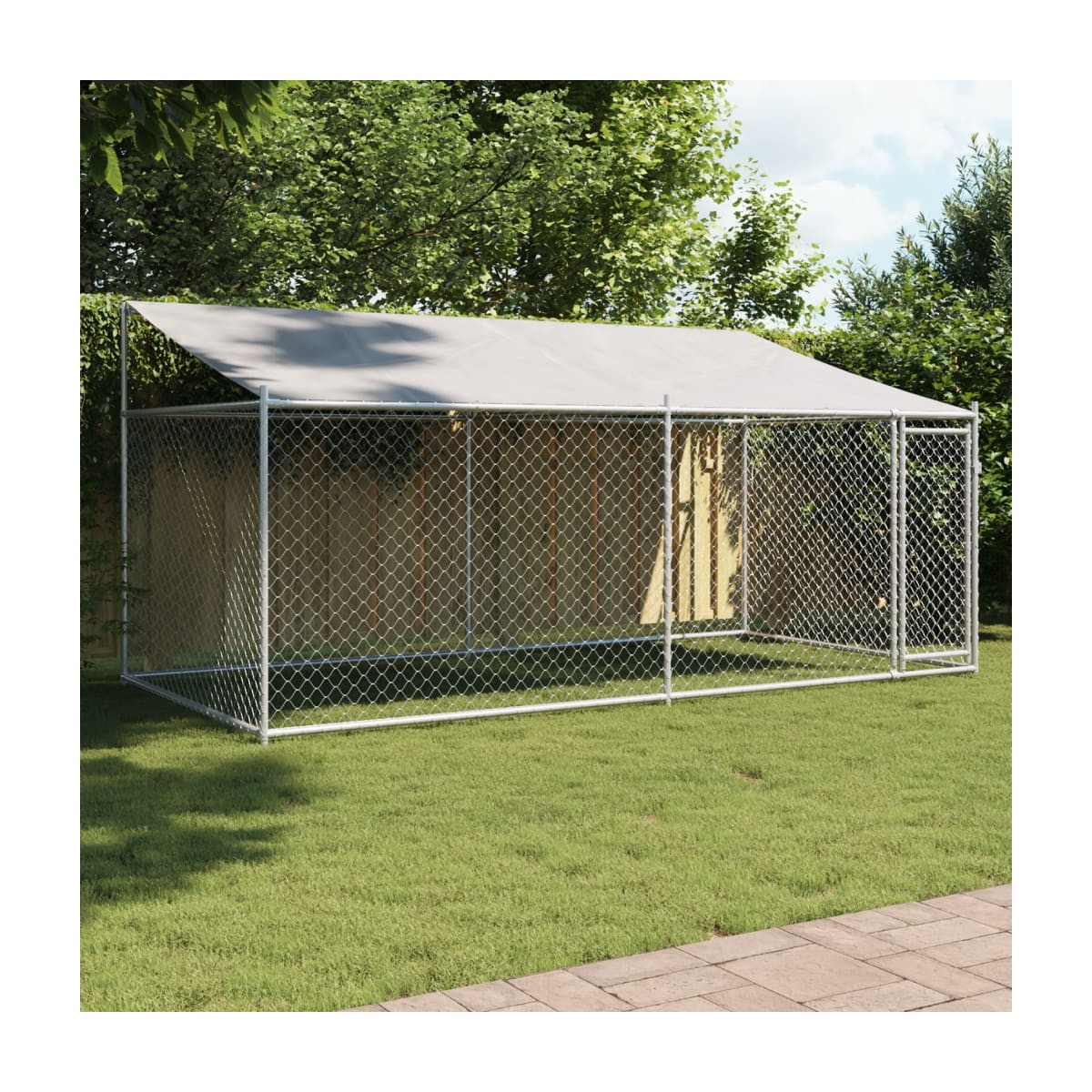 ¡Mantén a tus amigos peludos en un espacio seguro y cómodo con esta jaula para perros! Uso versátil: La versátil perrera cuenta con múltiples usos: jugar, hacer ejercicio, entrenar o simplemente mantener a tu perro seguro. ¡Será el paraíso de juego perfecto para tus animales!Construcción duradera: Gracias a la robusta y resistente construcción de acero galvanizado, el corral para perros es muy duradero.Diseño de malla: El diseño de malla de la caseta para perros al aire libre ayuda a evitar travesuras y accidentes inesperados, además de permitir la ventilación.Techo práctico: El techo de la jaula metálica para perros está hecho de tela resistente al agua para proporcionar sombra y protección contra la lluvia ligera a tu perro.Acceso práctico: La jaula exterior para perros cuenta con una puerta con cerradura, lo que facilita entrar y salir.