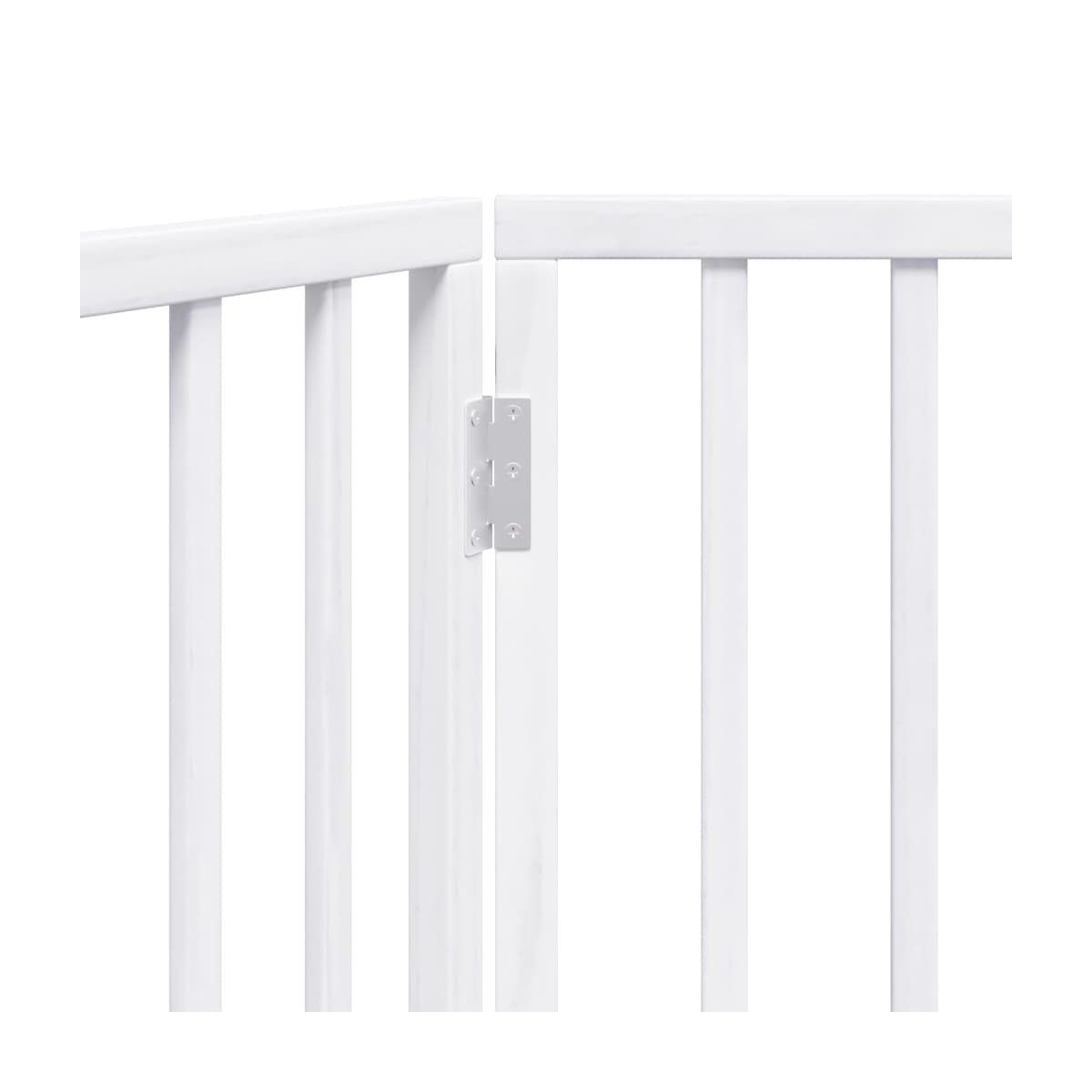 La puerta para perros coloca a tu mascota en una zona de actividad fija, lo que puede mantener a tu mascota segura y evitar ser molestado. Material duradero: La puerta para perros está hecha de madera de álamo con pintura a base de agua, lo que la hace duradera y fácil de limpiar.Fácil de usar: La puerta para perros no requiere instalación ni perforación así que no dañará tu hogar. Esta puerta para perros puede ser totalmente plegable cuando no tiene patas, por lo que es fácil de transportar y guardar en el armario o en otro lugar.Diversos usos: Esta puerta para perros puede evitar eficazmente que tus mascotas salten y pasen. Por lo tanto, es perfecta para mantener a tus mascotas seguras en el salón, la cocina, las escaleras y la puerta.