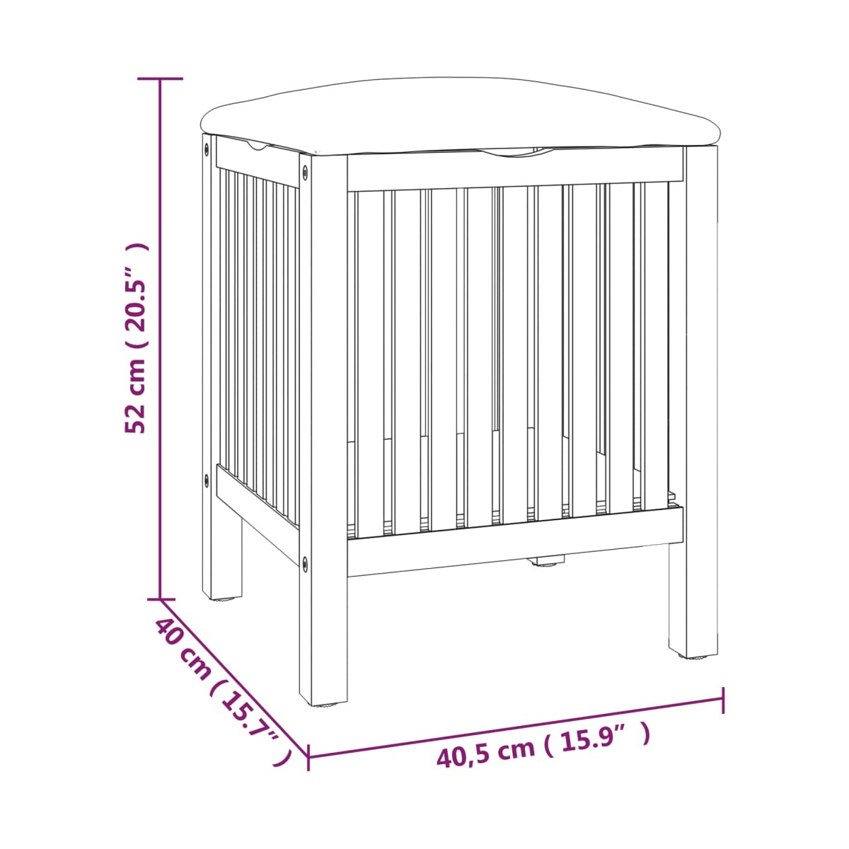- Dimensiones: 40,5 x 40 x 52 cm (largo x ancho x alto)
