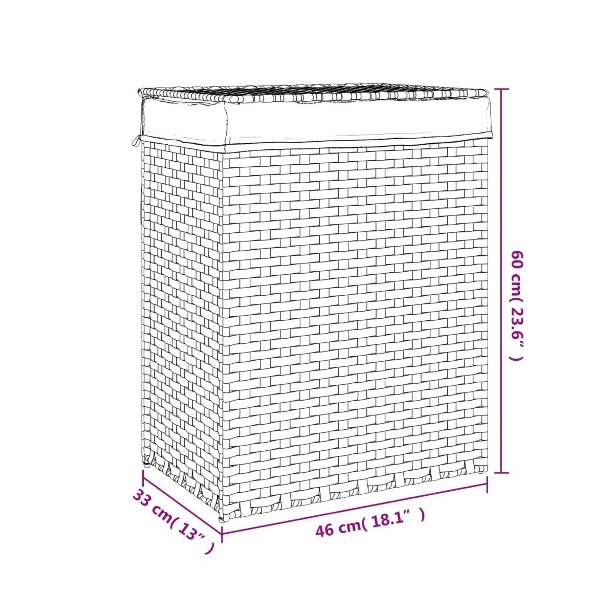 Este cesto para la ropa sucia ofrece un amplio espacio para la colada y dará un toque de encanto rústico al cuarto de baño. Material duradero: El ratán PE, también conocido como ratán sintético, es resistente a la intemperie y fácil de limpiar. La parte exterior se mantiene hermosa durante mucho tiempo. Es más económico que otros materiales, además de ofrecer una gran calidad, comodidad y aspecto estético.Diseño práctico: La tapa evita la aparición de malos olores y protege la ropa sucia del polvo. Además, el asa del lateral te ayuda a llevar el cesto al cuarto de la colada con facilidad.Bolsa interior extraíble: La bolsa interior se puede quitar fácilmente para lavarla.Diseño plegable: El cesto de la ropa sucia se puede plegar para ahorrar espacio cuando no se use.