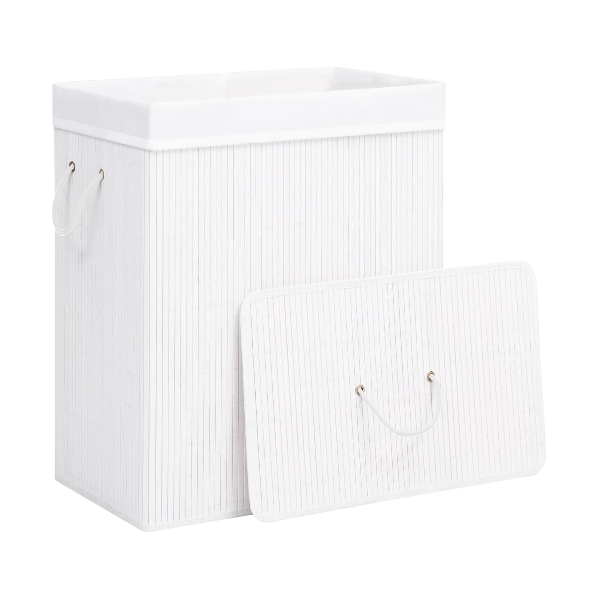 Este cesto de ropa de bambú es una solución ideal para cualquier hogar. Mantiene tu ropa sucia fuera de la vista y al mismo tiempo es un complemento decorativo para tu decoración. El forro interior está hecho de tela tejida, que no absorbe la humedad ni los olores. También es extraíble para que puedas transportar cómodamente tu ropa a la máquina. El gran volumen te brinda suficiente espacio para organizar y guardar la ropa. Equipado con asas, se puede mover fácilmente. El cesto de ropa de bambú se puede desmontar y plegar para guardarlo fácilmente. Es una solución perfecta para la organización de la sala de estar, el baño y el dormitorio. Además, la cesta multifuncional también se puede utilizar para guardar los juguetes de los niños. Ten en cuenta que el color real del cesto de la ropa puede diferir ligeramente del color de las imágenes.