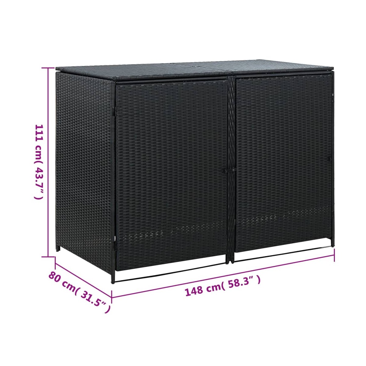 Este cobertizo doble con ruedas es ideal para esconder los contenedores en el jardín. También se puede usar como una caja grande para almacenamiento en el jardín. El cobertizo tiene una tapa que se puede abrir para acceder fácilmente a los contenedores de basura cuando quieras depositar basura. Tiene dos puertas que se abren individualmente con un sistema de bloqueo en la parte delantera, para que los contenedores se puedan retirar y vaciar fácilmente. Este cobertizo para contenedores puede alojar 2 contenedores de ruedas y se adaptará a cualquier decoración de jardín.