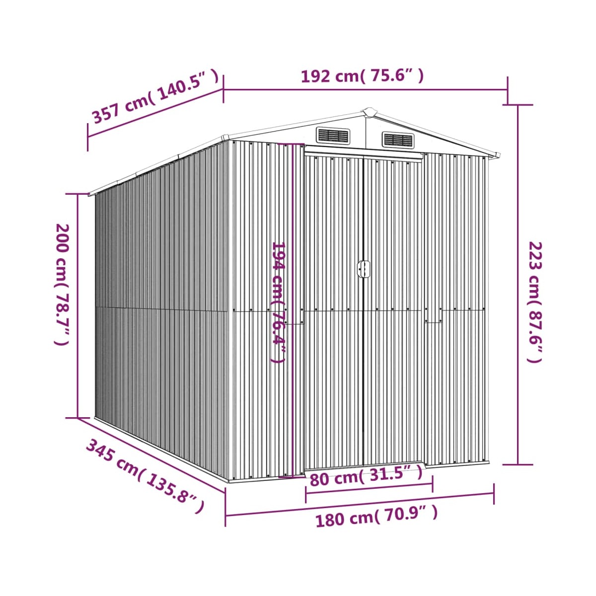 - Dimensiones de la puerta: 80 x 194 cm (largo x alto)