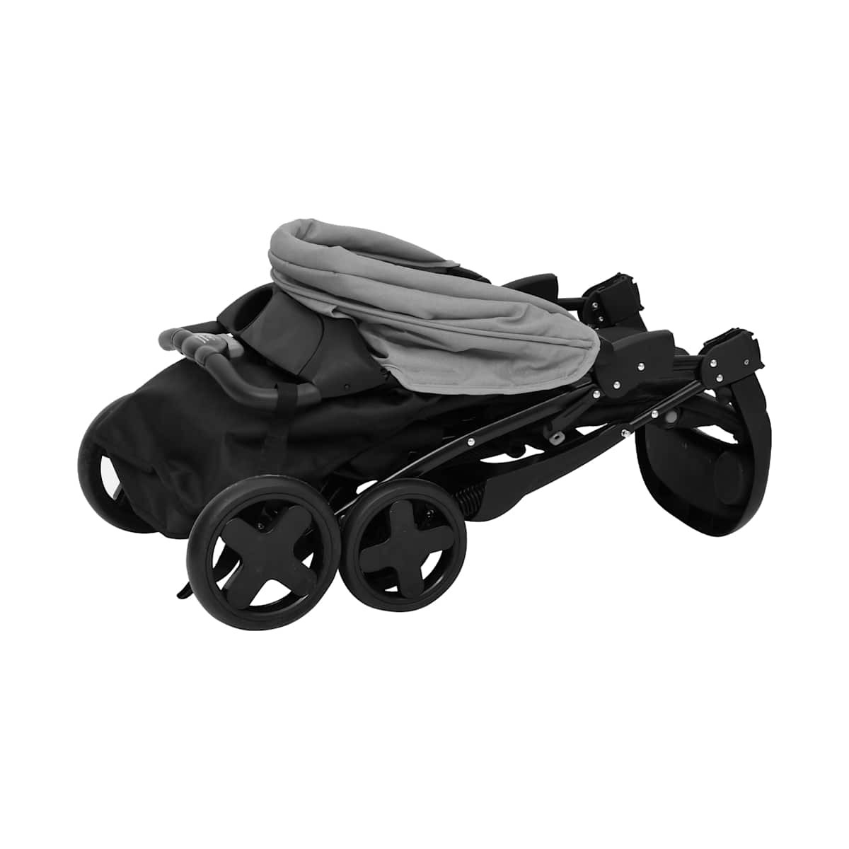 Carrito de bebés 3 en 1 de acero gris claro y negro