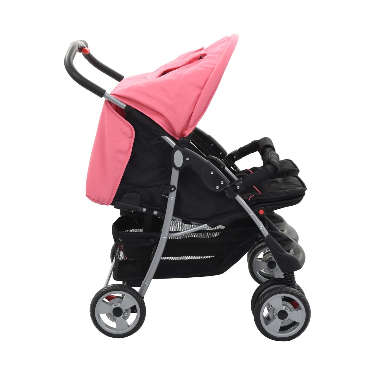 Este cómodo cochecito doble es una silla de paseo ideal para llevar a tus dos niños pequeños de paseo. Con una estructura de acero, este cochecito es muy duradero, fuerte y versátil. Este cómodo cochecito tiene una capota plegable que brinda protección contra la luz solar y los rayos UVA. Su respaldo es ajustable en 3 posiciones reclinables, por lo que su hijo siempre puede encontrar la posición más cómoda para sentarse o dormir. La cesta lo hace práctico para ir de compras o dar largos paseos. Además, este cochecito de bebé es fácil de maniobrar a través de puertas o pasillos, gracias a sus ruedas. Al ser bloqueable, las ruedas aportan seguridad. El carrito plegable es fácil de transportar y almacenar en un espacio reducido. El carrito es adecuado para niños de hasta 15 kg cada uno.