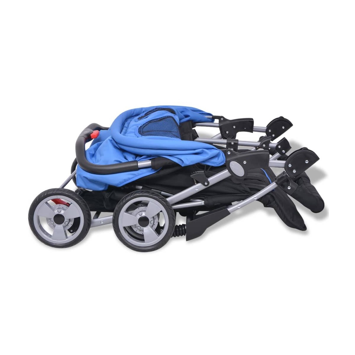 Este cómodo cochecito doble es una silla de paseo ideal para llevar a tus dos niños pequeños de paseo. Con una estructura de acero, este cochecito es muy duradero, fuerte y versátil. Este cómodo cochecito tiene una capota plegable que brinda protección contra la luz solar y los rayos UVA. Su respaldo es regulable en 3 posiciones de reclinado, para que tu hijo encuentre siempre la posición más cómoda para sentarse o dormir. La canasta lo hace práctico para ir de compras o dar largos paseos. Además, este cochecito de bebé es fácil de maniobrar a través de puertas o pasillos, gracias a sus ruedas. Al ser bloqueable, las ruedas aportan seguridad. El carrito plegable es fácil de transportar y almacenar en un espacio reducido. El carrito es adecuado para niños de hasta 15 kg cada uno.