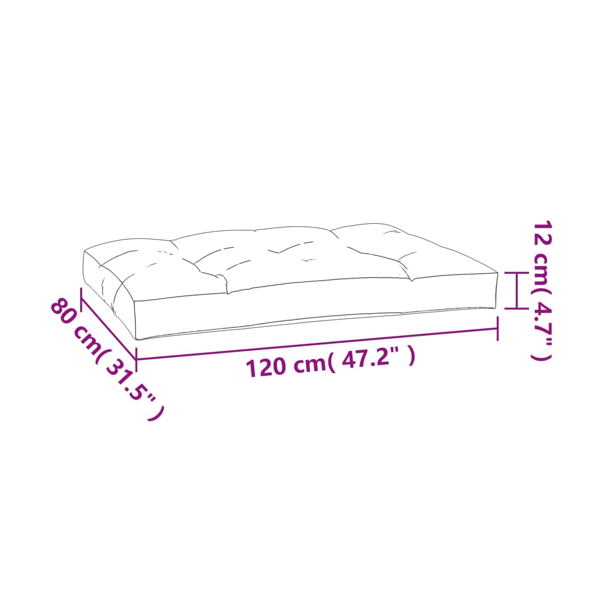 - Dimensiones del cojín de asiento: 120 x 80 x 12 cm (largo x ancho x grosor)