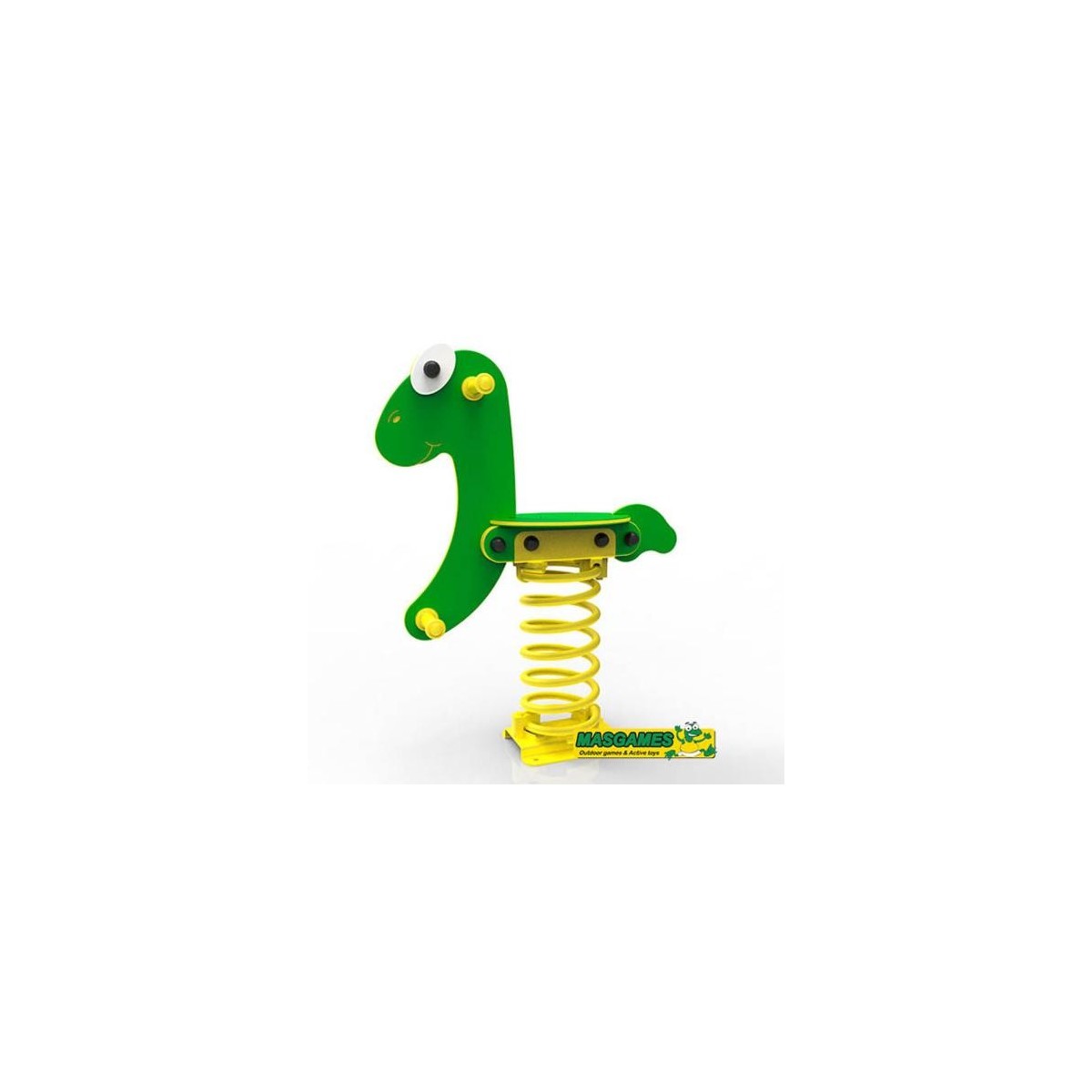 Muelle infantil fuerte y resistente, adecuado para instalar al exterior, ya que el balancín está fabricado en piezas de HDPE de 15 mm de grosor. Está homologado para uso público y por tanto, adecuado para parques infantiles en escuelas, ayuntamientos, comunidades, hoteles, campings y restaurantes.