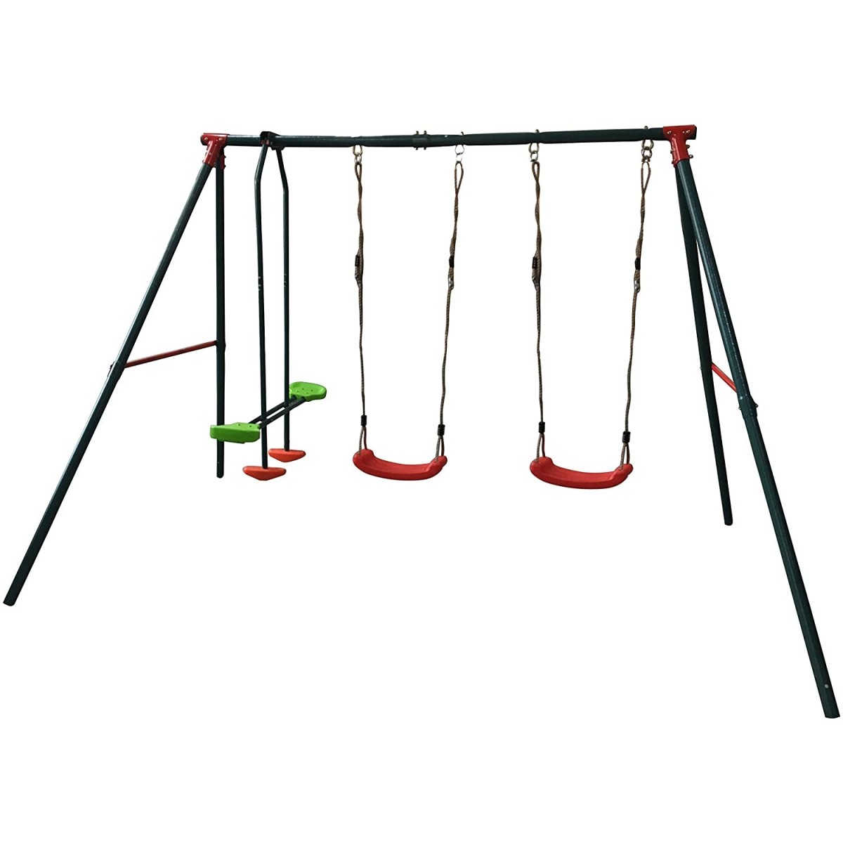 El columpio triple de metal YUCA de la marca Masgames es una estructura de tres columpios con una excelente relación calidad precio.