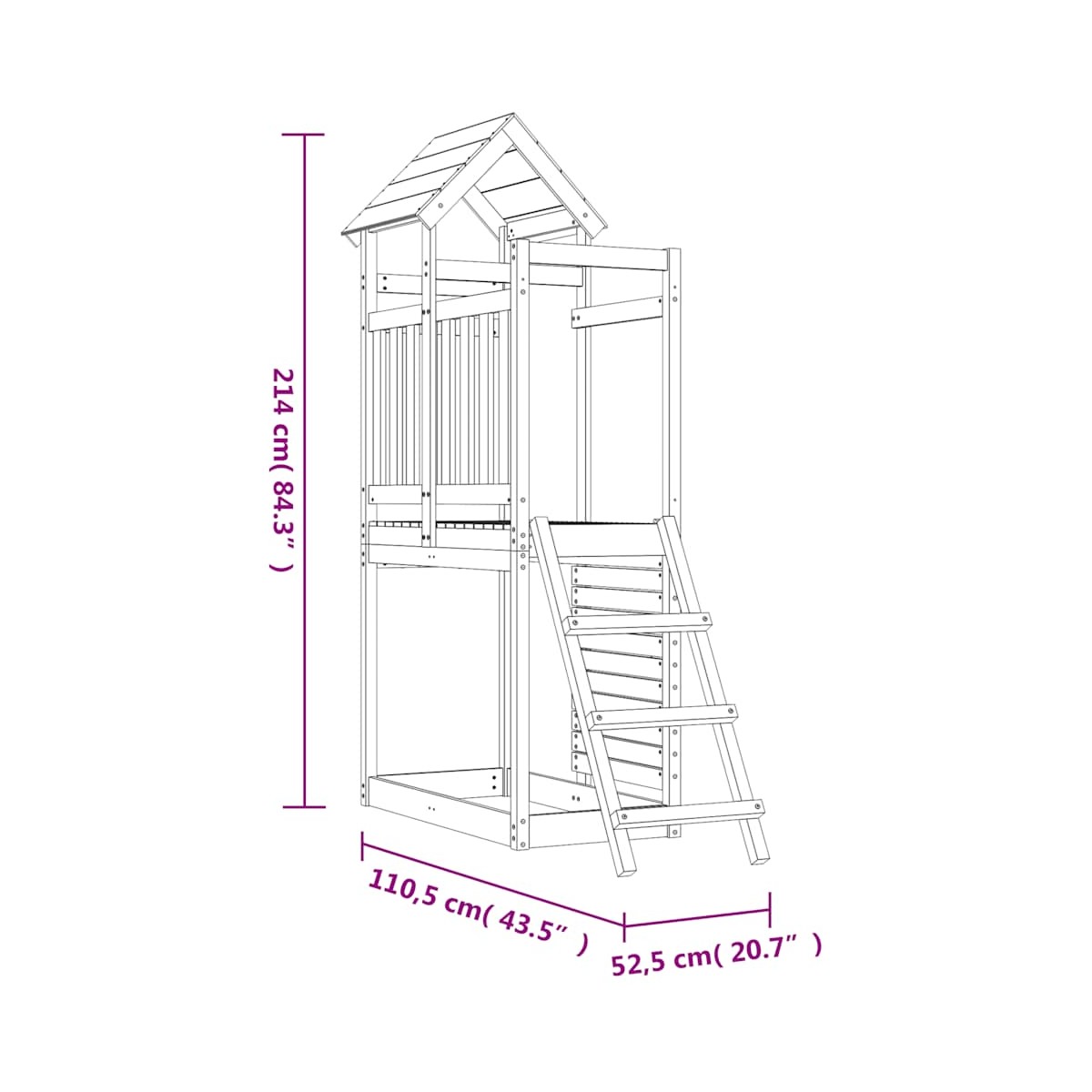 Este parque infantil de madera para exterior puede ofrecer muchas opciones de juego cuando se combina con un tobogán o un columpio e impresionará a tus hijos con sus fantásticos detalles. Madera impregnada: Este parque infantil está fabricado con madera de pino impregnada a presión al vacío. La madera maciza de pino es un bonito material natural. La madera de pino tiene vetas rectas, y los nudos dan al material su distintivo aspecto rústico. La impregnación es un proceso de conservación que se realiza mediante el uso de autoclaves. El tratamiento a presión aumenta la resistencia al deterioro y a la intemperie.Estructura de madera estable: La estructura de madera de la casita de jardín garantiza su solidez y estabilidad.Diseño práctico: Este parque infantil de exterior con pared de escalada y escalera se puede combinar libremente con un tobogán o un columpio para crear tu propia zona de juegos. Advertencia:Solo para uso domesticoUso al aire libreNo adecuado para niños menores de 3 añosEdad de usuario recomendada: De 3 a 8 añosPeso máximo por usuario: 45 kgNota:El producto debe anclarse para reducir posibles vuelcos. Los anclajes no están incluidos.Información útil:Para facilitar al máximo el montaje, cada producto se entrega con un manual.