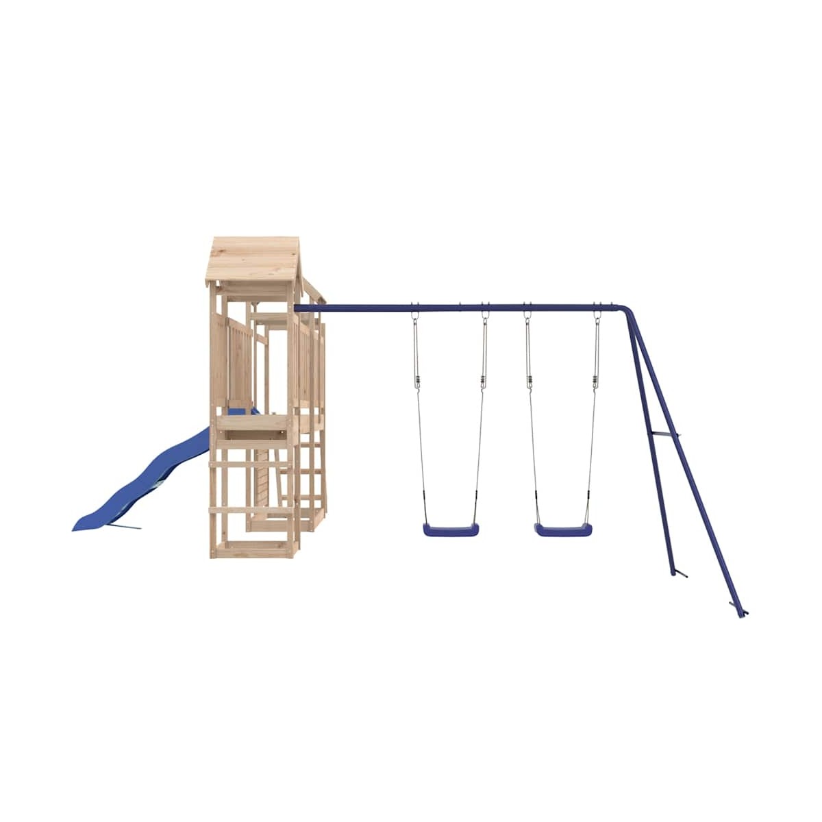 ¿Quieres que tus hijos jueguen en casa libremente? ¡Este set de parque infantil de madera transformará tu patio en un parque de recreo para tener las mejores aventuras imaginativas! Material duradero: Este parque infantil con tobogán está hecho de madera maciza de pino. La madera maciza de pino es un bonito material natural. La madera de pino tiene vetas rectas, y los nudos dan al material su distintivo aspecto rústico.Estructura robusta y estable: La estructura de madera de la estructura para trepar de jardín garantiza robustez y estabilidad. Además, las patas en forma de A del columpio infantil permiten el equilibrio.Centros de actividades múltiples: el parque infantil cuenta con una plataforma de 90 cm de altura y destaca por el tobogán, los columpios, la escalera, la pared de escalada y los areneros. Tus pequeños también pueden invitar a sus amigos a unirse a la diversión. Diseño cuidadoso: Las barandillas de madera están diseñadas para garantizar la seguridad de los niños mientras juegan felizmente. Además, el tejado de madera da sombra a los niños en los calurosos días de verano.Diversión sin fin: ¡Esta casita infantil de madera para jardín ofrece mucha diversión y es la manera perfecta para que tus hijos y tus amigos disfruten, interactúen más y creen recuerdos todos juntos! Advertencia:Solo para uso domesticoUso al aire libre No adecuado para niños menores de 3 años Edad de usuario recomendada: De 3 a 8 años Nota:El producto debe anclarse para reducir posibles vuelcos. Los anclajes no están incluidos. Información útil:La entrega solo incluye el tobogán, la casa de juegos no está incluida.Para facilitar al máximo el montaje, cada producto se entrega con un manual.
