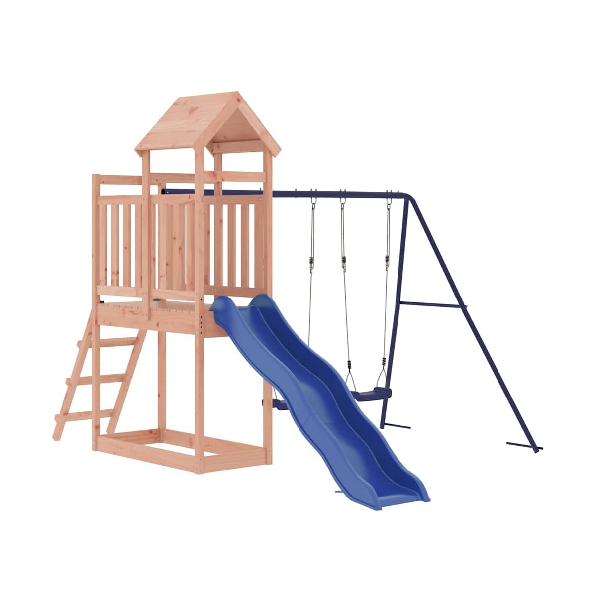¿Quieres que tus hijos jueguen en casa libremente? ¡Este set de parque infantil de madera transformará tu patio en un parque de recreo para tener las mejores aventuras imaginativas! Material duradero: Este parque infantil con tobogán está hecho de madera maciza de abeto de Douglas. La madera maciza de Douglas es una madera muy duradera que funciona bien para exteriores. La madera de abeto Douglas también es fuerte y necesita un cuidado mínimo, incluso bajo la influencia del tiempo meteorológico. Estructura robusta y estable: La estructura de madera de la estructura para trepar de jardín garantiza robustez y estabilidad. Además, las patas en forma de A del columpio infantil permiten el equilibrio.Centros de actividades múltiples: El parque infantil cuenta con una plataforma de 90 cm de altura y destaca por el tobogán ondulado, los columpios, la escalera y el arenero. Tus pequeños también pueden invitar a sus amigos a unirse a la diversión. Diseño cuidadoso: Las barandillas de madera circundantes están diseñadas para garantizar la seguridad de los niños durante su juego feliz. Además, el techo de madera da sombra a tus hijos en los calurosos días de verano. Diversión sin fin: ¡Esta casita infantil de madera para jardín ofrece mucha diversión y es la manera perfecta para que tus hijos y tus amigos disfruten, interactúen más y creen recuerdos todos juntos! Advertencia:Solo para uso domesticoUso al aire libre No adecuado para niños menores de 3 años Edad de usuario recomendada: de 3 a 8 años Nota:El producto debe anclarse para reducir posibles vuelcos. Los anclajes no están incluidos. Información útil:La entrega solo incluye el tobogán, la casa de juegos no está incluida.Para facilitar al máximo el montaje, cada producto se entrega con un manual.