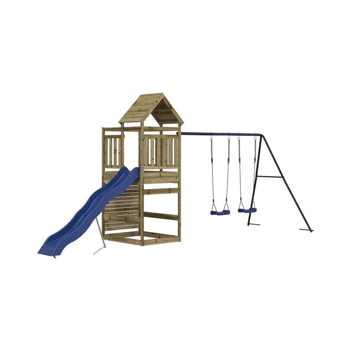 ¿Quieres que tus hijos jueguen en casa libremente? ¡Este set de parque infantil de madera transformará tu patio en un parque de recreo para tener las mejores aventuras imaginativas! Madera impregnada: Este parque infantil para jardín está fabricado con madera de pino impregnada al vacío. La madera maciza de pino es un bonito material natural. La madera de pino tiene vetas rectas, y los nudos dan al material su distintivo aspecto rústico. La impregnación es un proceso de conservación que se realiza mediante el uso de autoclaves. El tratamiento a presión aumenta la resistencia al deterioro y a la intemperie.Estructura robusta y estable: La estructura de madera del juego garantiza robustez y estabilidad. Además, las patas en forma de A del columpio infantil aportan equilibrio al conjunto.Juego de actividades múltiples: El parque infantil cuenta con una plataforma de 118 cm de altura y destaca con su rocódromo, tobogán ondulado, 2 columpios y un arenero. Tus pequeños también pueden invitar a sus amigos a unirse a la diversión. Diseño cuidadoso: Las barandillas de madera circundantes están diseñadas para garantizar la seguridad de los niños durante su juego feliz. Además, el techo de madera da sombra a tus hijos en los calurosos días de verano.Diversión sin fin: ¡Este parque infantil de madera lleno de diversión es perfecto para que tus hijos y sus amigos disfruten, tengan más tiempo interactivo y para crear recuerdos juntos! Advertencia:Solo para uso domesticoUso al aire libreNo adecuado para niños menores de 3 añosEdad de usuario recomendada: de 3 a 8 añosPeso máximo por usuario: 45 kg Nota:El producto debe anclarse para reducir posibles vuelcos. Los anclajes no están incluidos.
