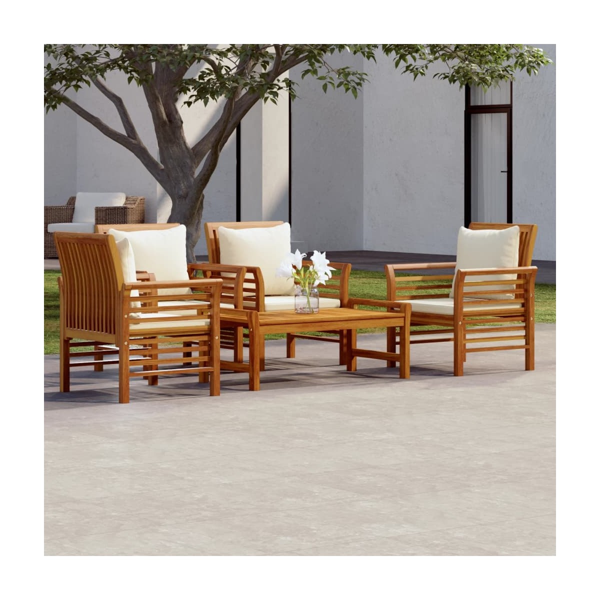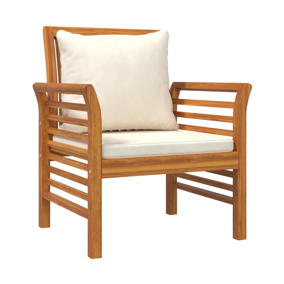 Este juego de muebles de jardín combina estilo y funcionalidad y es una opción ideal para relajarte y disfrutar del buen tiempo, echarte una siesta o charlar con familiares y amigos. Material de primera calidad: La madera maciza de acacia es un bonito material natural. La madera de acacia es una madera dura tropical, densa, robusta y duradera.Plus de comodidad: Gracias al tapizado 100% de poliéster y al grueso acolchado, los cojines incluidos son blandos y proporcionan el confort definitivo.Mesita ideal: Con una robusta superficie, la mesa es ideal para tener a mano comida y bebida mientras te relajas al aire libre. Nota:Para prolongar la vida de tus muebles de exterior, te recomendamos que los protejas con una funda impermeable.Cada producto viene con un manual de montaje en la caja para facilitar el montaje.