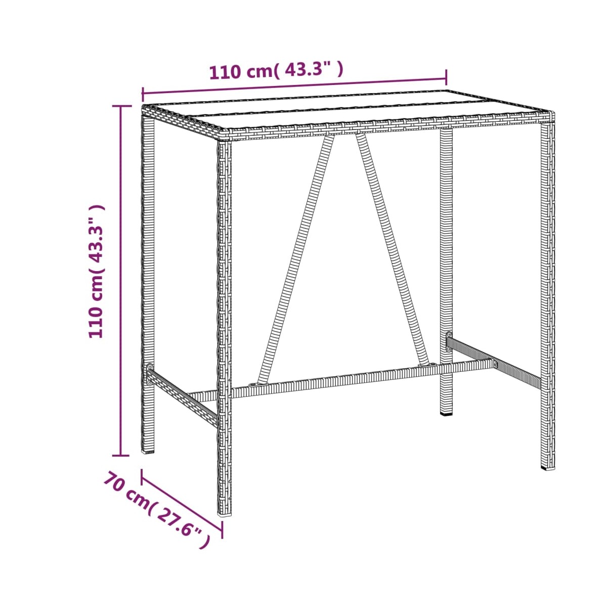 - Dimensiones: 110 x 70 x 110 cm (largo x ancho x alto)
