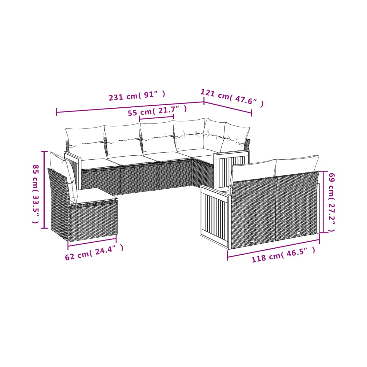 Este conjunto de sofás de jardín es el complemento perfecto para el jardín, terraza o patio, ya que proporciona un espacio confortable y acogedor para charlar con familiares y amigos o simplemente relajarte y disfrutar del aire libre. Material duradero: El ratán PE, también conocido como ratán sintético, es un material sintético resistente y de bajo mantenimiento que se parece al ratán natural. Es ligero, fácil de limpiar y se usa comúnmente para muebles de exterior debido a su durabilidad y propiedades resistentes a la intemperie.Función de almacenamiento con bolsa resistente al agua: El mueble de jardín cuenta con espacio de almacenamiento debajo del asiento, completo con una bolsa resistente al agua para guardar cojines, juguetes y otros artículos. La bolsa interior se puede sujetar de forma segura a los muebles de exterior con cierres de gancho y bucle para mayor estabilidad.Funda desenfundable y lavable: Estos cojines de asiento cuentan con fundas desenfundables para facilitar el lavado y mantenimiento.Diseño modular: Este conjunto de muebles de exterior tiene un diseño modular, por lo que es completamente flexible y fácil de mover, para que puedas crear una disposición de muebles de exterior personalizada. Información útil:Para asegurarte de que tus muebles de exterior se mantengan hermosos, recomendamos protegerlos con una funda impermeable.