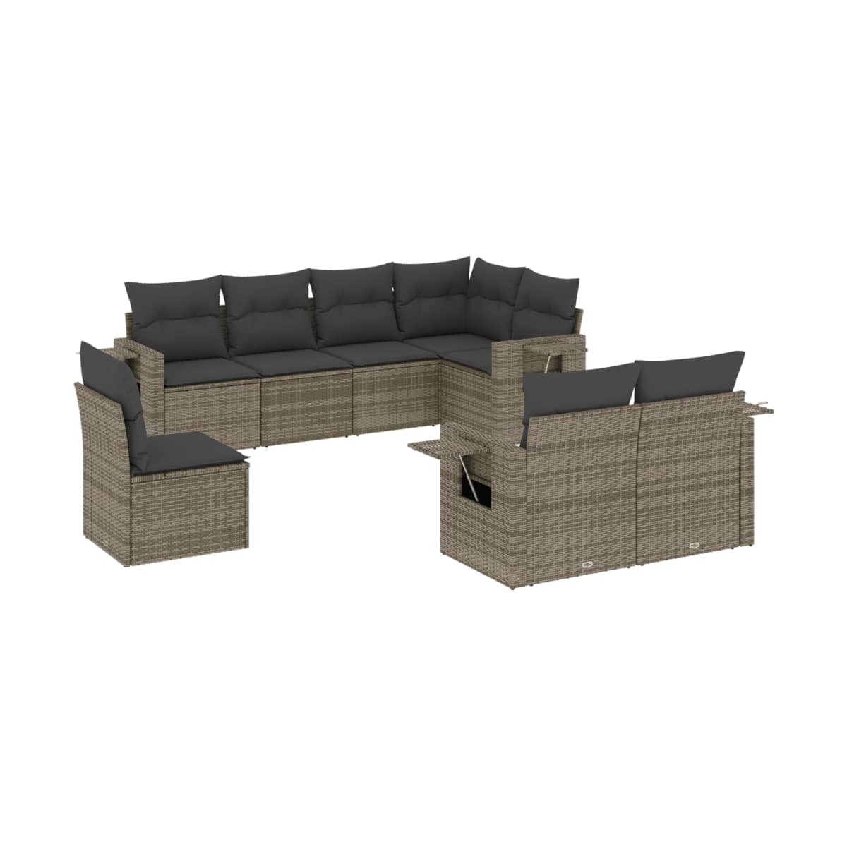 Este conjunto de sofás de jardín es el complemento perfecto para el jardín, terraza o patio, ya que proporciona un espacio confortable y acogedor para charlar con familiares y amigos o simplemente relajarte y disfrutar del aire libre. Material duradero: El ratán PE, también conocido como ratán sintético, es un material sintético resistente y de bajo mantenimiento que se parece al ratán natural. Es ligero, fácil de limpiar y se usa comúnmente para muebles de exterior debido a su durabilidad y propiedades resistentes a la intemperie.Función de almacenamiento con bolsa resistente al agua: El mueble de jardín cuenta con espacio de almacenamiento debajo del asiento, completo con una bolsa resistente al agua para guardar cojines, juguetes y otros artículos. La bolsa interior se puede sujetar de forma segura a los muebles de exterior con cierres de gancho y bucle para mayor estabilidad.Cómoda mesa auxiliar: Este mueble de exterior cuenta con una mesa auxiliar plegable con un resorte de gas en los reposabrazos, lo que proporciona un lugar conveniente para mantener tus elementos esenciales al alcance de la mano.Funda desenfundable y lavable: Estos cojines de asiento cuentan con fundas desenfundables para facilitar el lavado y mantenimiento.Diseño modular: Este conjunto de muebles de exterior tiene un diseño modular, por lo que es completamente flexible y fácil de mover, para que puedas crear una disposición de muebles de exterior personalizada. Información útil:Para asegurarte de que tus muebles de exterior se mantengan hermosos, recomendamos protegerlos con una funda impermeable.
