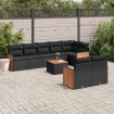 Este conjunto de sofás de jardín es el complemento perfecto para el jardín, terraza o patio, ya que proporciona un espacio confortable y acogedor para charlar con familiares y amigos o simplemente relajarte y disfrutar del aire libre. Material duradero: El ratán de PE, también conocido como ratán sintético, es un material sintético resistente y de bajo mantenimiento que se parece al ratán natural. Es ligero, fácil de limpiar y se usa comúnmente para muebles de exterior debido a su durabilidad y propiedades resistentes a la intemperie.Experiencia de asiento cómoda: Estos muebles de exterior, completos con cojines acolchados gruesos, ofrecen una experiencia de asiento cómoda.Superficie estable y fácil de limpiar: Esta mesa de jardín tiene una superficie de madera de acacia que es resistente, duradero y fácil de limpiar con un paño húmedo.Funda desenfundable y lavable: Estos cojines de asiento cuentan con fundas desenfundables para facilitar el lavado y mantenimiento.Diseño modular: Este conjunto de muebles de exterior tiene un diseño modular, por lo que es completamente flexible y fácil de mover, para que puedas crear una disposición de muebles de exterior personalizada. Información útil:Para asegurarte de que tus muebles de exterior se mantengan hermosos, recomendamos protegerlos con una funda impermeable.
