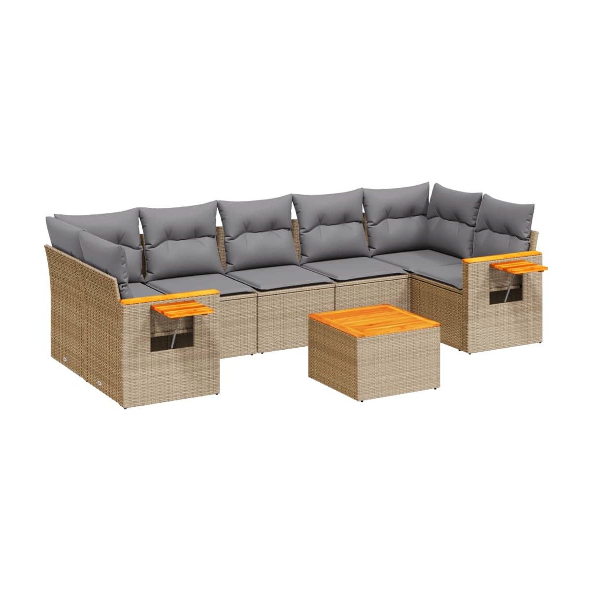 Este conjunto de sofás de jardín es el complemento perfecto para el jardín, terraza o patio, ya que proporciona un espacio confortable y acogedor para charlar con familiares y amigos o simplemente relajarte y disfrutar del aire libre. Material duradero: El ratán PE, también conocido como ratán sintético, es un material sintético resistente y de bajo mantenimiento que se parece al ratán natural. Es ligero, fácil de limpiar y se usa comúnmente para muebles de exterior debido a su durabilidad y propiedades resistentes a la intemperie.Función de almacenamiento con bolsa resistente al agua: El mueble de jardín cuenta con espacio de almacenamiento debajo del asiento, completo con una bolsa resistente al agua para guardar cojines, juguetes y otros artículos. La bolsa interior se puede sujetar de forma segura a los muebles de exterior con cierres de gancho y bucle para mayor estabilidad.Cómoda mesa auxiliar: Este mueble de exterior cuenta con una mesa auxiliar plegable con un resorte de gas en los reposabrazos, lo que proporciona un lugar conveniente para mantener tus elementos esenciales al alcance de la mano.Funda desenfundable y lavable: Estos cojines de asiento cuentan con fundas desenfundables para facilitar el lavado y mantenimiento.Diseño modular: Este conjunto de muebles de exterior tiene un diseño modular, por lo que es completamente flexible y fácil de mover, para que puedas crear una disposición de muebles de exterior personalizada. Información útil:Para asegurarte de que tus muebles de exterior se mantengan hermosos, recomendamos protegerlos con una funda impermeable.