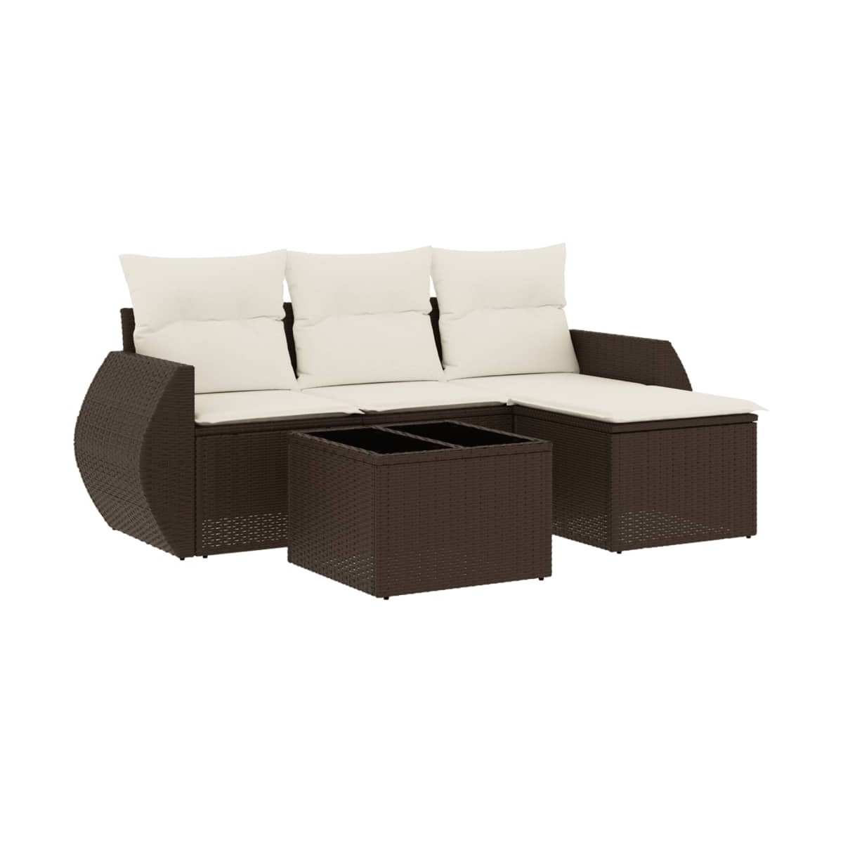Este conjunto de sofás de jardín es el complemento perfecto para el jardín, terraza o patio, ya que proporciona un espacio confortable y acogedor para charlar con familiares y amigos o simplemente relajarte y disfrutar del aire libre. Material duradero: El ratán PE, también conocido como ratán sintético, es un material sintético resistente y de bajo mantenimiento que se parece al ratán natural. Es ligero, fácil de limpiar y se usa comúnmente para muebles de exterior debido a su durabilidad y propiedades resistentes a la intemperie.Función de almacenaje con bolsa impermeable: Cada asiento de jardín cuenta con espacio de almacenamiento debajo del asiento, completo con una bolsa resistente al agua para guardar cojines, juguetes y otros artículos. Las bolsas interiores tienen una cubierta superior y pueden fijarse firmemente a los asientos con cierres adhesivos para mayor estabilidad.Superficie de vidrio: La superficie de la mesa de exterior es de vidrio templado resistente y duradero, por lo que es fácil de limpiar con un paño húmedo y añade un toque de elegancia a tu espacio exterior.Funda desenfundable y lavable: Estos cojines de asiento cuentan con fundas desenfundables para facilitar el lavado y mantenimiento.Diseño modular: Este conjunto de muebles de exterior tiene un diseño modular, por lo que es completamente flexible y fácil de mover, para que puedas crear una disposición de muebles de exterior personalizada. Información útil:Para asegurarte de que tus muebles de exterior se mantengan hermosos, recomendamos protegerlos con una funda impermeable.