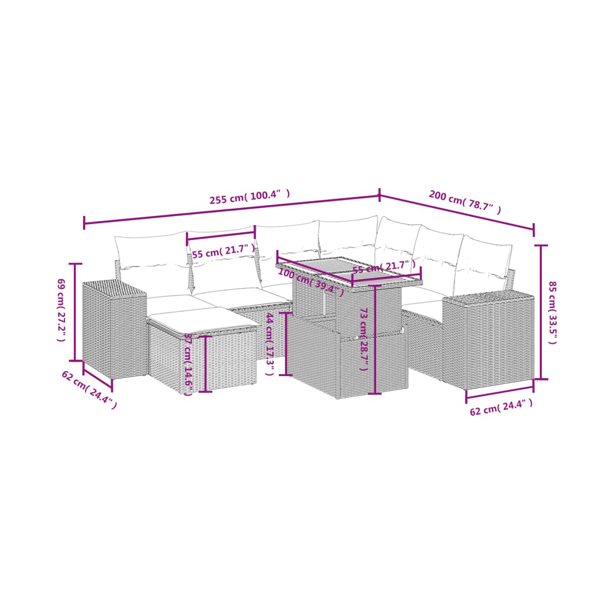 Este conjunto de sofás de jardín es el complemento perfecto para el jardín, terraza o patio, ya que proporciona un espacio confortable y acogedor para charlar con familiares y amigos o simplemente relajarte y disfrutar del aire libre. Material duradero: El ratán PE, también conocido como ratán sintético, es un material sintético resistente y de bajo mantenimiento que se parece al ratán natural. Es ligero, fácil de limpiar y se usa comúnmente para muebles de exterior debido a su durabilidad y propiedades resistentes a la intemperie.Tablero ajustable: El tablero de la mesa se puede levantar para que la mesa sea más alta, lo que transforma la mesa de jardín de una mesa de centro a una mesa de comedor. Es perfecta para invitar a invitados o comer al aire libre.Experiencia de asiento cómoda: Estos muebles de exterior, completos con cojines acolchados gruesos, ofrecen una experiencia de asiento cómoda.Funda desenfundable y lavable: Estos cojines de asiento cuentan con fundas desenfundables para facilitar el lavado y mantenimiento.Diseño modular: Este conjunto de muebles de exterior tiene un diseño modular, por lo que es completamente flexible y fácil de mover, para que puedas crear una disposición de muebles de exterior personalizada. Información útil:Para asegurarte de que tus muebles de exterior se mantengan hermosos, recomendamos protegerlos con una funda impermeable.