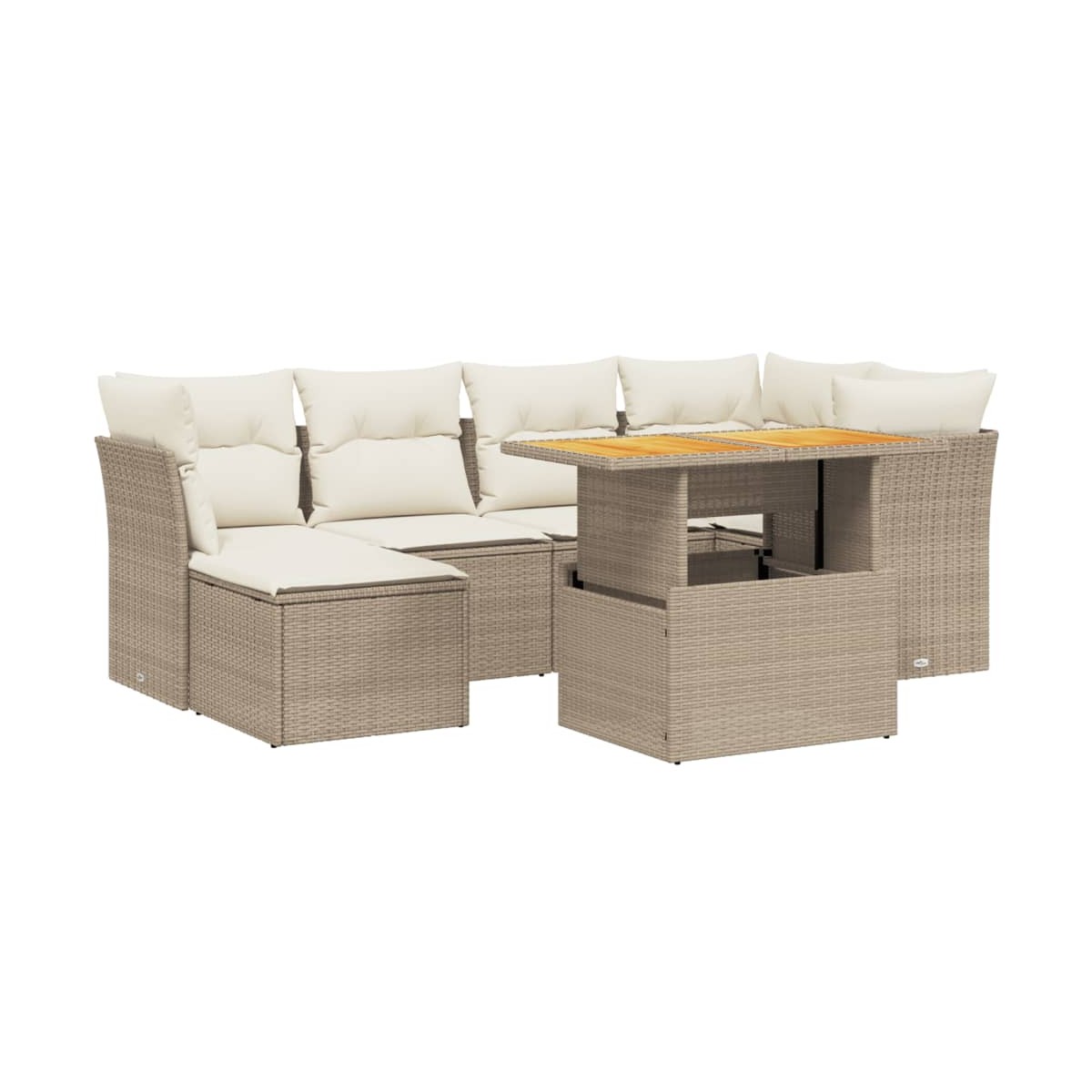 Este conjunto de sofás de jardín es el complemento perfecto para el jardín, terraza o patio, ya que proporciona un espacio confortable y acogedor para charlar con familiares y amigos o simplemente relajarte y disfrutar del aire libre. Material duradero: El ratán PE, también conocido como ratán sintético, es un material sintético resistente y de bajo mantenimiento que se parece al ratán natural. Es ligero, fácil de limpiar y se usa comúnmente para muebles de exterior debido a su durabilidad y propiedades resistentes a la intemperie.Tablero ajustable: El tablero de la mesa se puede levantar para que la mesa sea más alta, lo que transforma la mesa de jardín de una mesa de centro a una mesa de comedor. Es perfecta para invitar a invitados o comer al aire libre.Funda desenfundable y lavable: Estos cojines de asiento cuentan con fundas desenfundables para facilitar el lavado y mantenimiento.Diseño modular: Este conjunto de muebles de exterior tiene un diseño modular, por lo que es completamente flexible y fácil de mover, para que puedas crear una disposición de muebles de exterior personalizada. Información útil:Para asegurarte de que tus muebles de exterior se mantengan hermosos, recomendamos protegerlos con una funda impermeable.