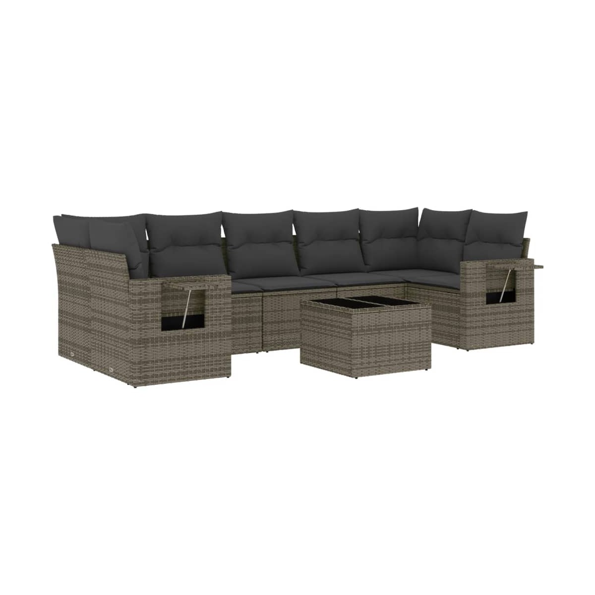 Este conjunto de sofás de jardín es el complemento perfecto para el jardín, terraza o patio, ya que proporciona un espacio confortable y acogedor para charlar con familiares y amigos o simplemente relajarte y disfrutar del aire libre. Material duradero: El ratán PE, también conocido como ratán sintético, es un material sintético resistente y de bajo mantenimiento que se parece al ratán natural. Es ligero, fácil de limpiar y se usa comúnmente para muebles de exterior debido a su durabilidad y propiedades resistentes a la intemperie.Superficie de vidrio: La superficie de la mesa de exterior es de vidrio templado resistente y duradero, por lo que es fácil de limpiar con un paño húmedo y añade un toque de elegancia a tu espacio exterior. Práctica mesa auxiliar: Este mueble de exterior cuenta con una mesa auxiliar plegable con un resorte de gas en los reposabrazos, lo que proporciona un lugar conveniente para mantener tus elementos esenciales al alcance de la mano. Experiencia de asiento cómoda: Estos muebles de exterior, completos con cojines acolchados gruesos, ofrecen una experiencia de asiento cómoda.Diseño modular: Este conjunto de muebles de exterior tiene un diseño modular, por lo que es completamente flexible y fácil de mover, para que puedas crear una disposición de muebles de exterior personalizada. Información útil:Para asegurarte de que tus muebles de exterior se mantengan hermosos, recomendamos protegerlos con una funda impermeable.