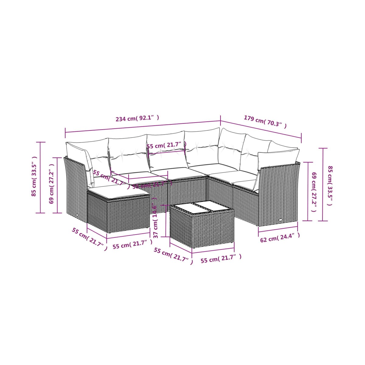 Este conjunto de sofás de jardín es el complemento perfecto para el jardín, terraza o patio, ya que proporciona un espacio confortable y acogedor para charlar con familiares y amigos o simplemente relajarte y disfrutar del aire libre. Material duradero: El ratán de PE, también conocido como ratán sintético, es un material sintético resistente y de bajo mantenimiento que se parece al ratán natural. Es ligero, fácil de limpiar y se usa comúnmente para muebles de exterior debido a su durabilidad y propiedades resistentes a la intemperie.Función de almacenaje con bolsa impermeable: Cada asiento de jardín cuenta con espacio de almacenamiento debajo del asiento, completo con una bolsa resistente al agua para guardar cojines, juguetes y otros artículos. Las bolsas interiores tienen una cubierta superior y pueden fijarse firmemente a los asientos con cierres adhesivos para mayor estabilidad.Superficie de vidrio: La superficie de la mesa de exterior es de vidrio templado resistente y duradero, por lo que es fácil de limpiar con un paño húmedo y añade un toque de elegancia a tu espacio exterior.Funda desenfundable y lavable: Estos cojines de asiento cuentan con fundas desenfundables para facilitar el lavado y mantenimiento.Diseño modular: Este conjunto de muebles de exterior tiene un diseño modular, por lo que es completamente flexible y fácil de mover, para que puedas crear una disposición de muebles de exterior personalizada. Información útil:Para asegurarte de que tus muebles de exterior se mantengan hermosos, recomendamos protegerlos con una funda impermeable.