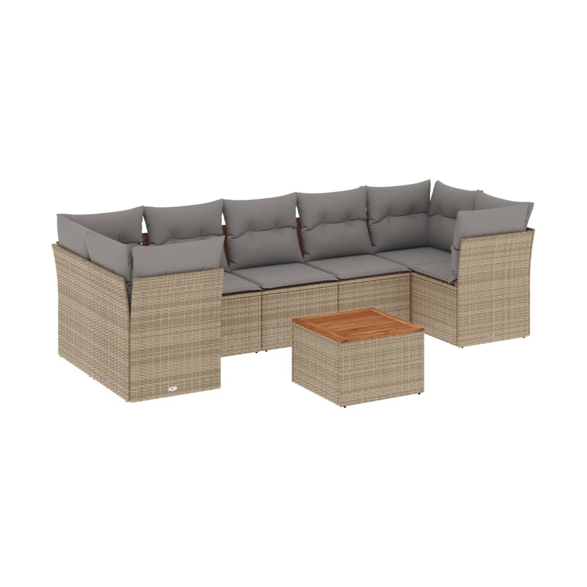 Este conjunto de sofás de jardín es el complemento perfecto para el jardín, terraza o patio, ya que proporciona un espacio confortable y acogedor para charlar con familiares y amigos o simplemente relajarte y disfrutar del aire libre. Material duradero: El ratán PE, también conocido como ratán sintético, es un material sintético resistente y de bajo mantenimiento que se parece al ratán natural. Es ligero, fácil de limpiar y se usa comúnmente para muebles de exterior debido a su durabilidad y propiedades resistentes a la intemperie.Experiencia de asiento cómoda: Estos muebles de exterior, completos con cojines acolchados gruesos, ofrecen una experiencia de asiento cómoda.Superficie estable y fácil de limpiar: Esta mesa de jardín tiene una superficie de madera de acacia que es resistente, duradero y fácil de limpiar con un paño húmedo.Funda desenfundable y lavable: Estos cojines de asiento cuentan con fundas desenfundables para facilitar el lavado y mantenimiento.Diseño modular: Este conjunto de muebles de exterior tiene un diseño modular, por lo que es completamente flexible y fácil de mover, para que puedas crear una disposición de muebles de exterior personalizada. Información útil:Para asegurarte de que tus muebles de exterior se mantengan hermosos, recomendamos protegerlos con una funda impermeable.